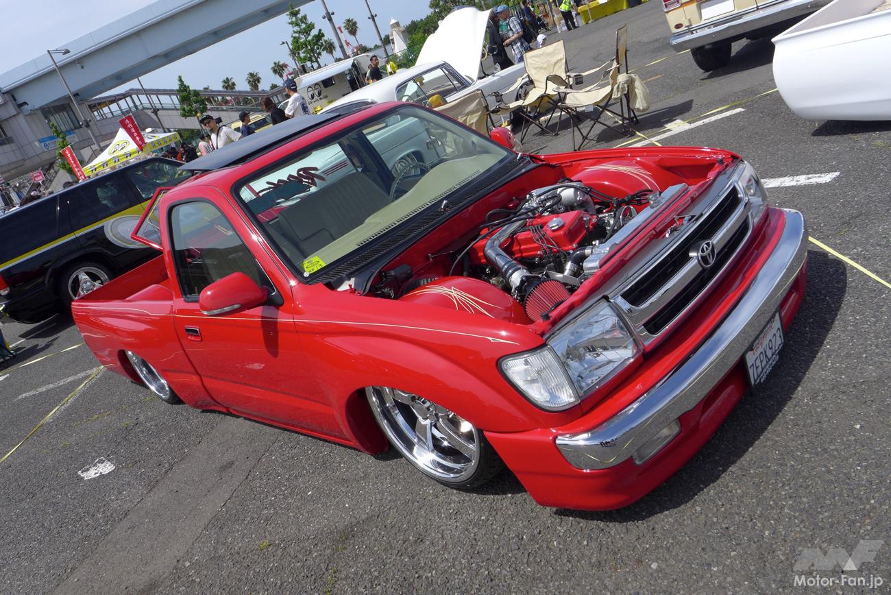 相模原のBlowが手掛けたFuny Rider(ハイゼットトラックベース)やEasy Rider(バモスベース)などのフェイスコンバージョンカスタムはすでに一大勢力となっているし、流行の軽ベースのアゲトラ&アゲバンも元気が良い。また、1980年代のヤングタイマーのエントリーも目立っている。