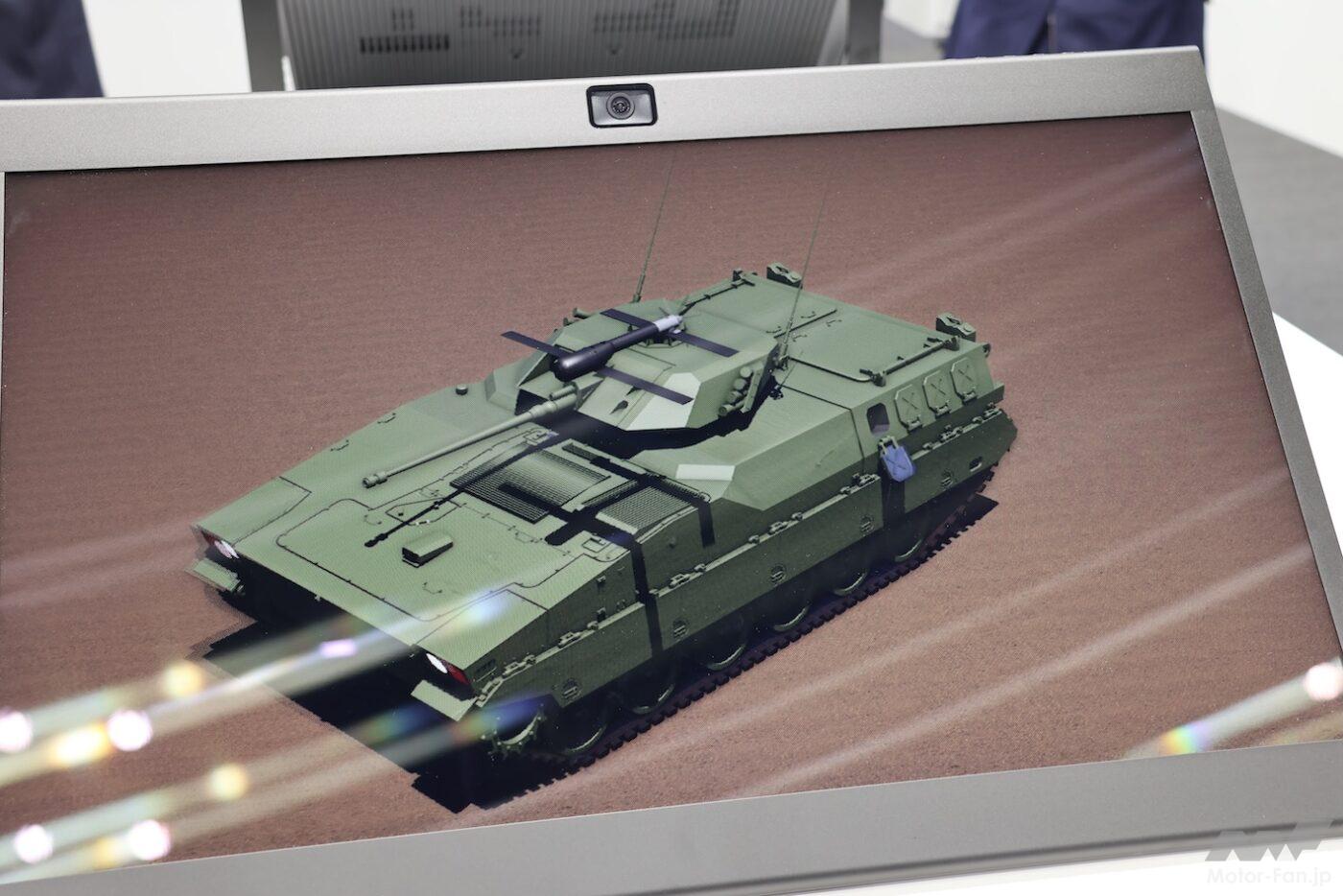 さて、三菱重工のブースでは89式装甲戦闘車に似た車両のCGが発表されていた。こちらはUGV(無人地上車両)であり、車体後部の乗員用キャビン部分からアメリカの自爆ドローン「スイッチブレード」ような無人機が射出されるというギミックが目を引いた。