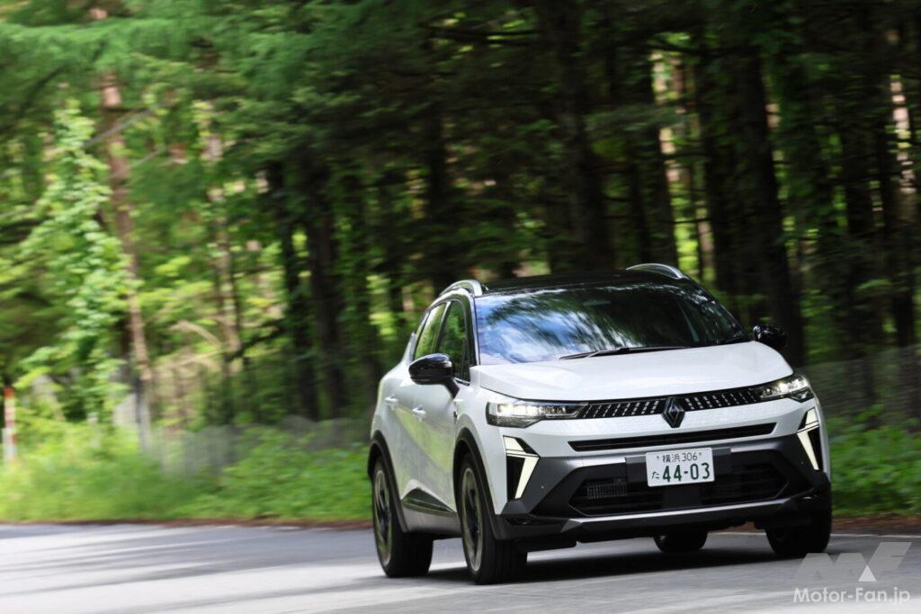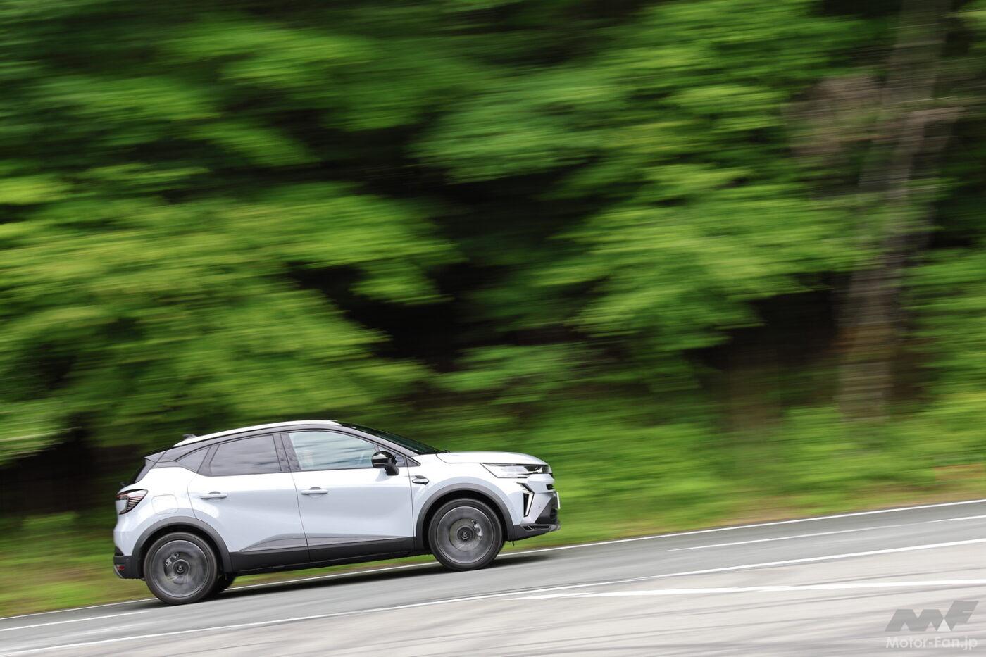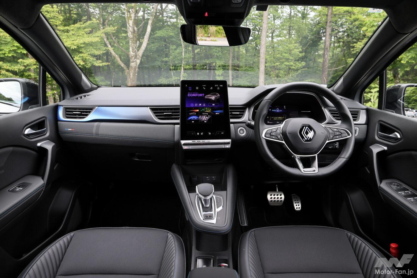 同じく「ルノー・マルチセンス」を切り替えて走ってみたが、コンフォートやエコでは物足りなさを覚えたレスポンスは、スポーツモードにすることで完全に解消。BセグメントSUVとして最強といえる158psのパワー感を存分に味わえる。フルハイブリッドに対して90kg軽いこともあり、コーナー進入時の姿勢もスパッと決まりやすい。パドルシフトが備わることもあり、ワインディングなどをスポーティに楽しみたいのであれば、マイルドハイブリッドを選ぶのは正解といえるかもしれない。