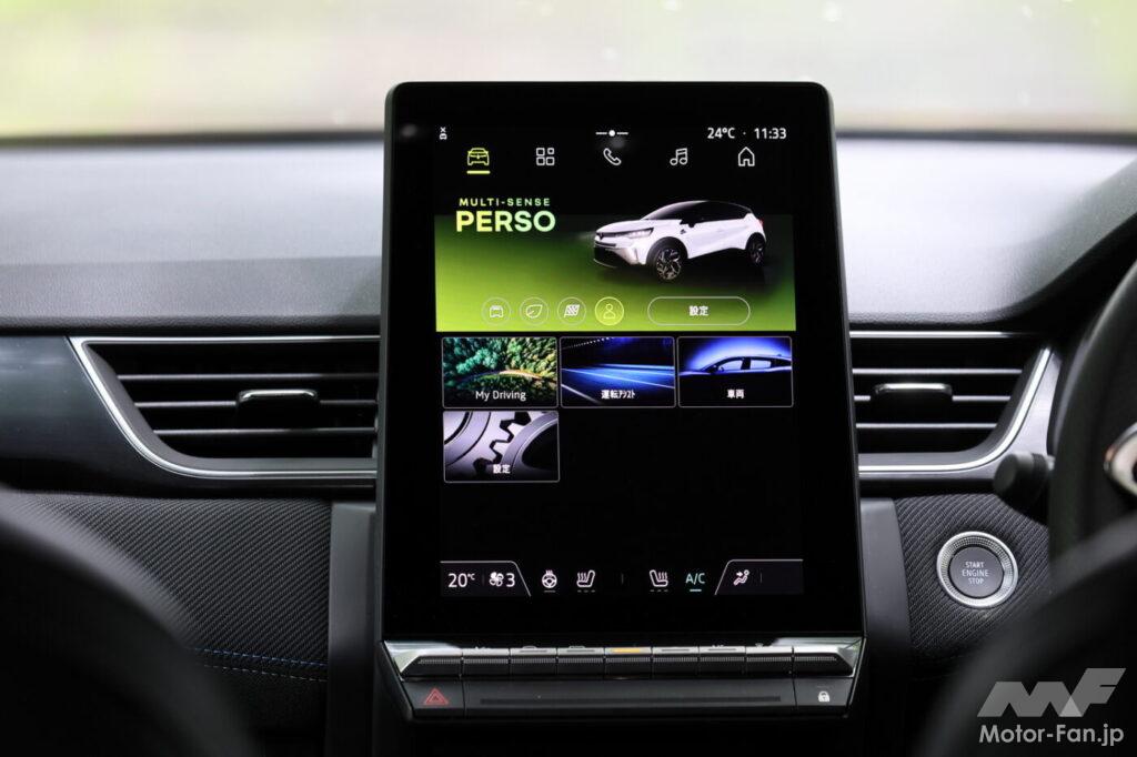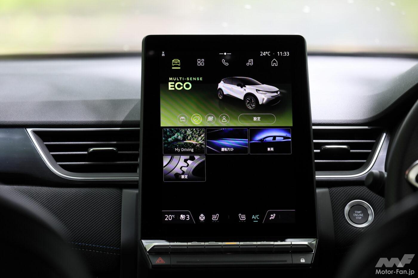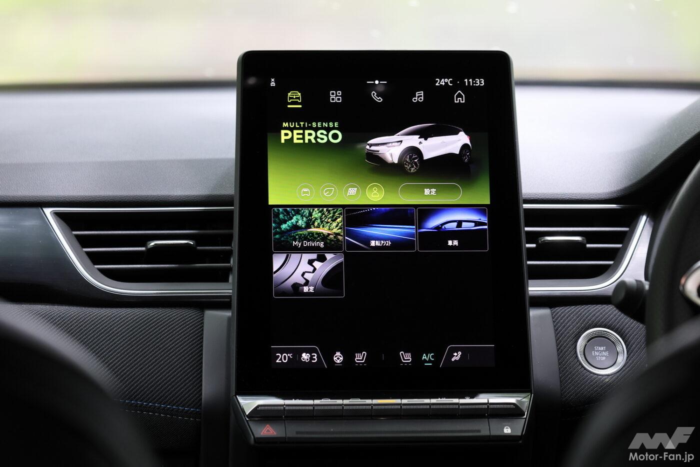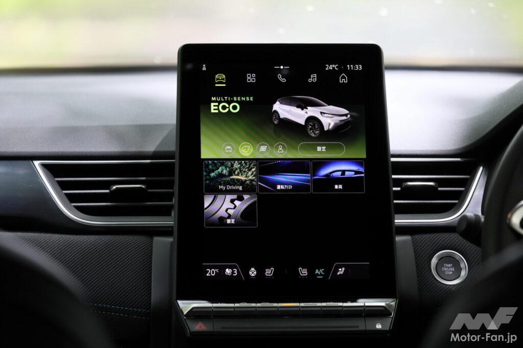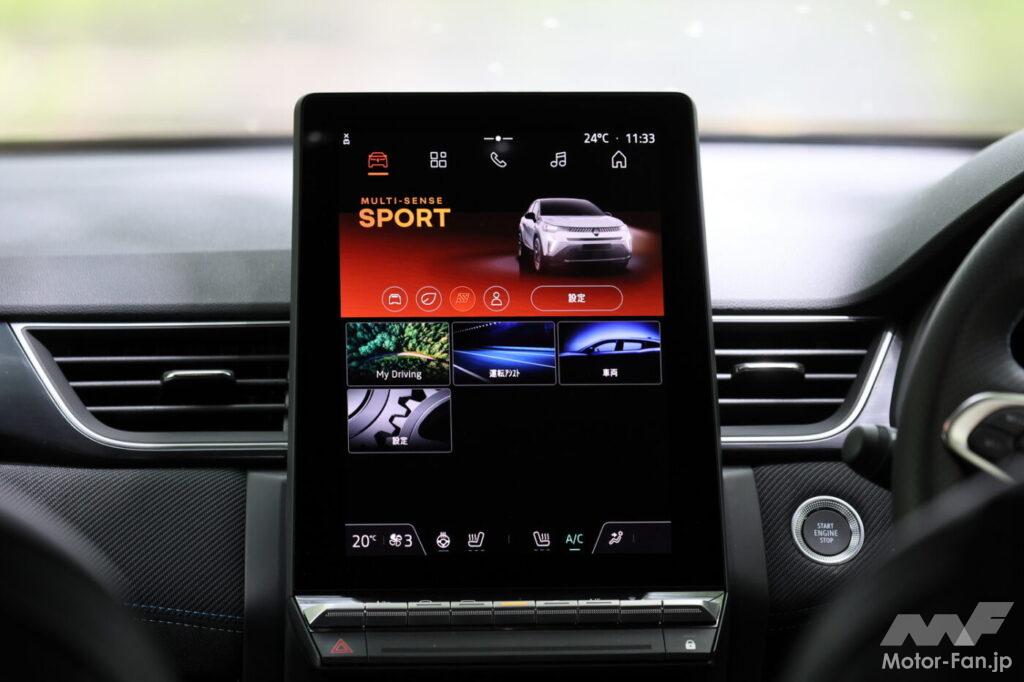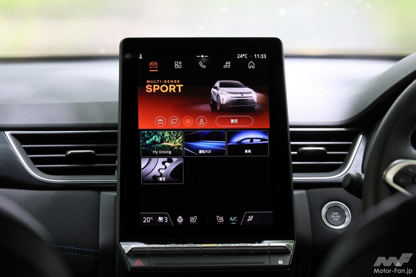 それにしても、アクセルペダルを操作する右足と駆動系がつながっているかのようなリニアなフィーリングは、たしかにフルハイブリッドらしい。「ルノー・マルチセンス」と名付けられたドライブモードは、スタンダードが「コンフォート」で、ほかに「エコ」や「スポーツ」などを選べるが、とくにコンフォートでのリニア感が抜群という印象も受けた。