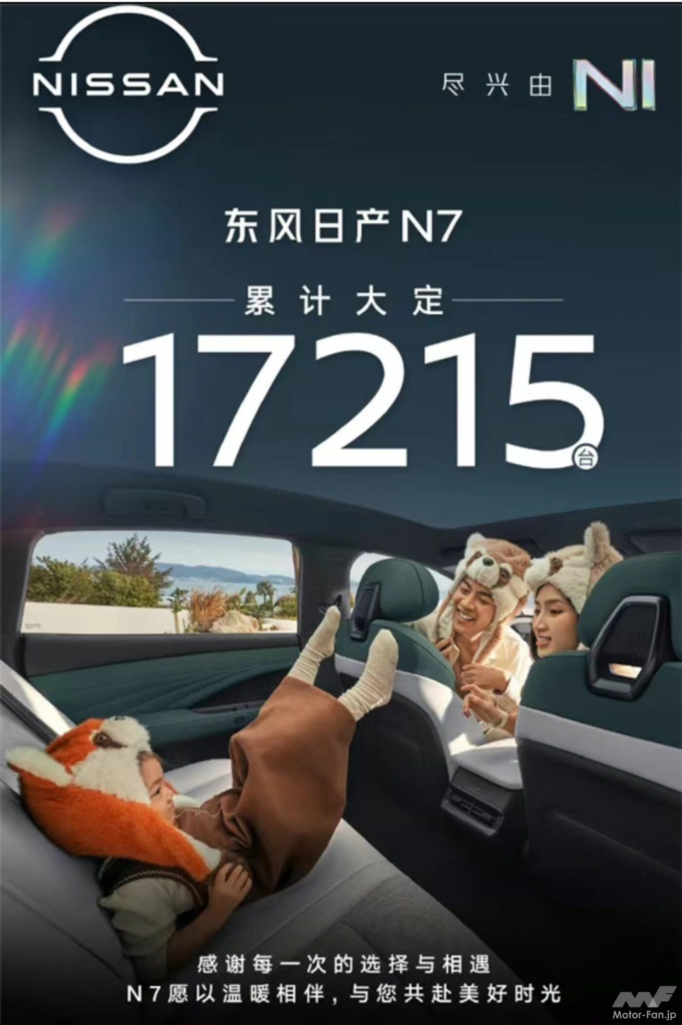 日産は、2027年夏までに9車種のNEVを中国市場に投入する計画だ。その第一弾であるN7の滑り出し好調は、日産にとって明るいニュースである。
