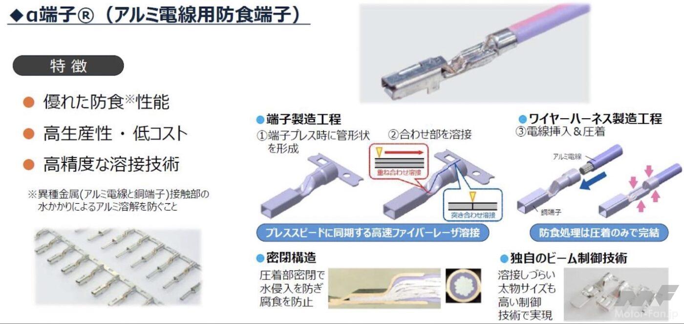 さらに、古河電工との共同でワイヤーハーネスの一部を銅線からアルミ線に変更し、18%の軽量化を実現した。