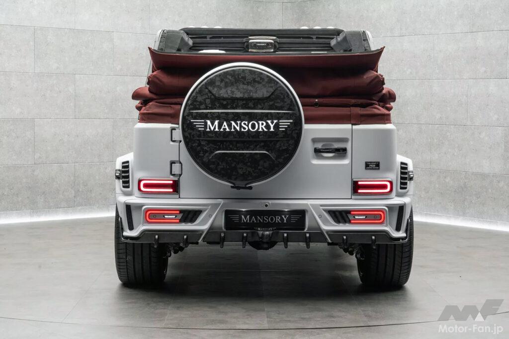マンソリーはルーフの開閉が手動式か電動式かを明らかにしていないが、ルーフを開ければ、後部座席の乗員は2017年に登場した、メルセデス・マイバッハ「G650ランドレー」に似た、ワイルドな景色を目にすることができるはずだ。
