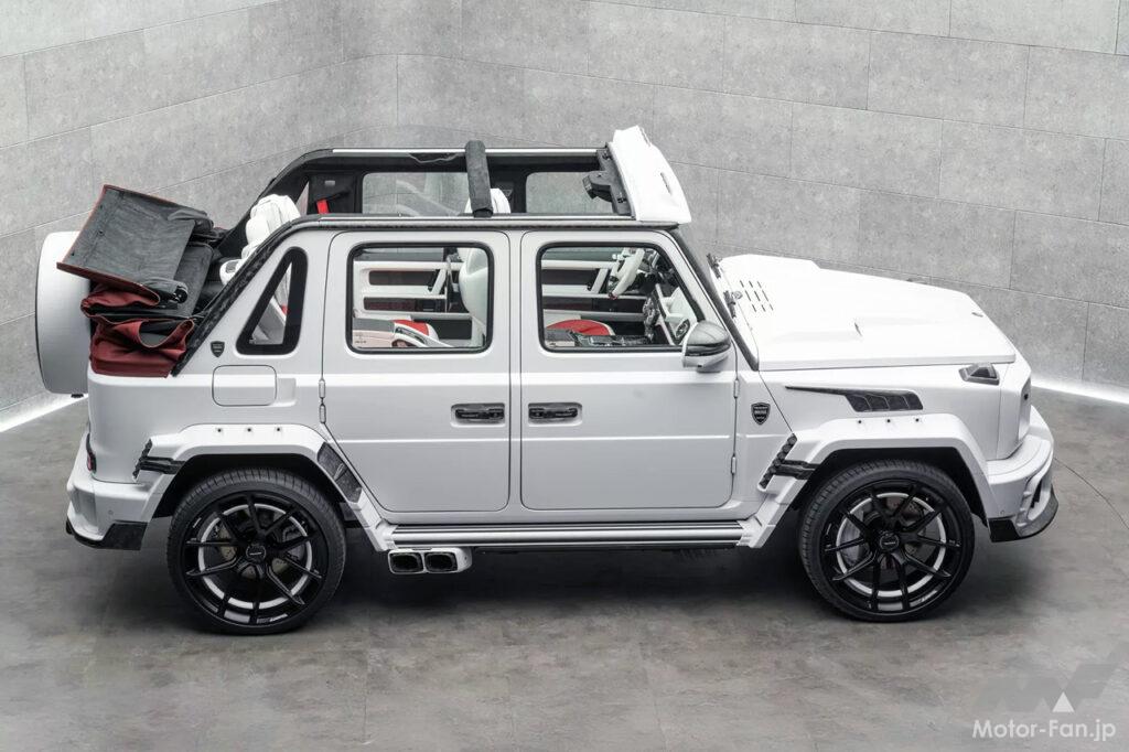 モンテカルロで開催された、トップ・マルケス・モナコで発表されたこのGクラスは、リアヒンジのスーサイドドアを備えたコンバーチブルへと生まれ変わっている。初夏のロサンゼルスのサンセット大通りを快適にドライブし、太陽を浴びながら人々の注目を集めたいなら、このマンソリー製Gクラスは最強かもしれない。