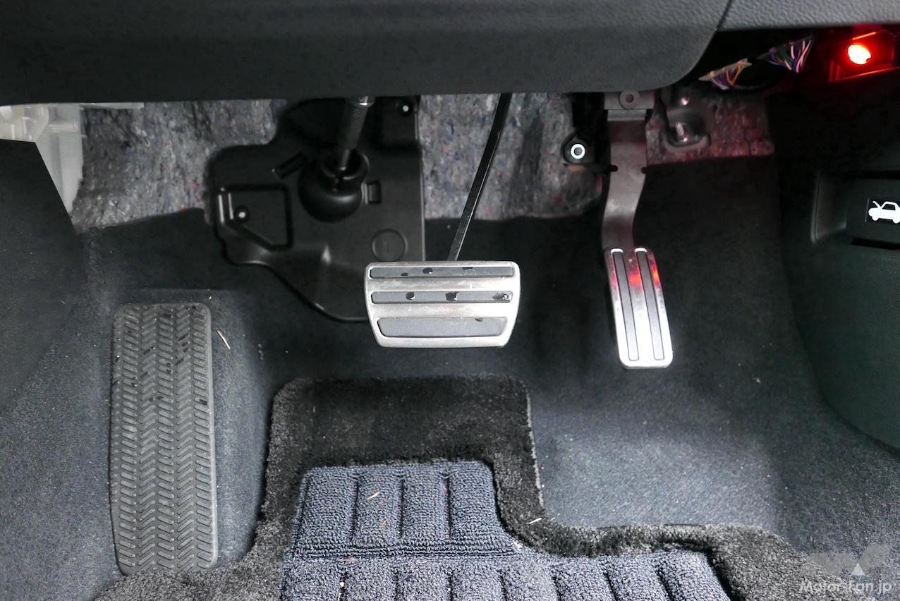 それでも試乗コースは前半が登坂路中心のために、アクセル開度は大きめとなる。さすがに法定速度まで一気に加速させようとするとエンジンはかかってしまうが、そのときのフィーリングは悪くない。ジワッと加速するかのように始動し、従来よりも振動が抑えられていることで、違和感無く受け入れられる。