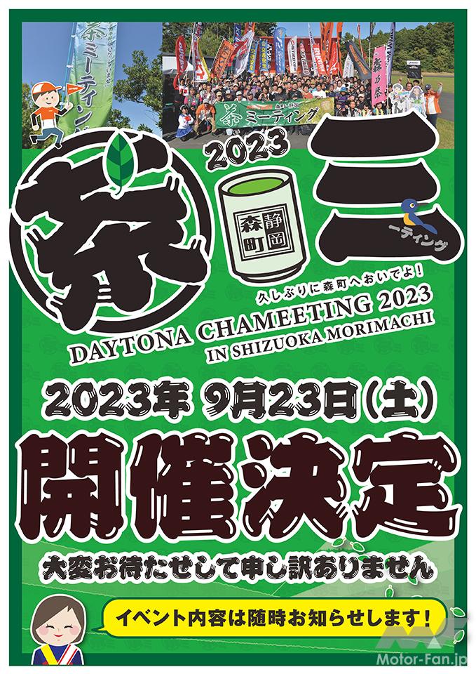 モーターサイクルショーの会場やSNSなどでは、「早く茶ミーティングを復活させて欲しい!」との要望が多数寄せられ、デイトナでは2023年6月、正式に開催を決定。日程は秋分の日である2023年9月23日(土)を予定している。