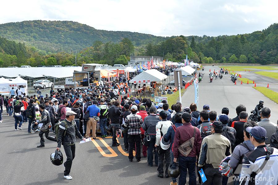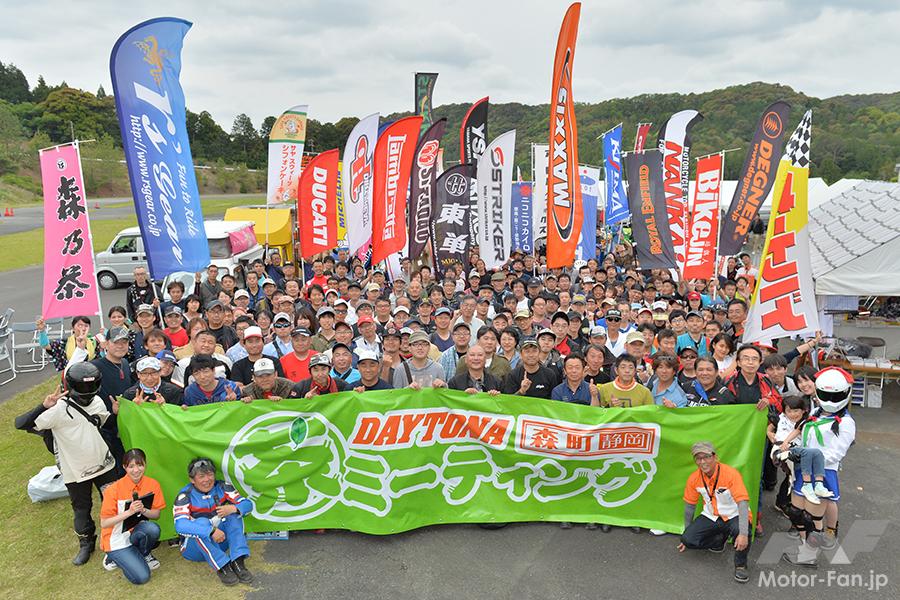 デイトナ本社横にあるテストコースを舞台にした「DAYTONA森町・静岡 茶ミーティング」は、試乗会、メーカーのブース出展、ステージでの催し物など、盛り沢山のメニューをスタンバイ。全国各地から、多くのライダーが集まることでも有名だ。