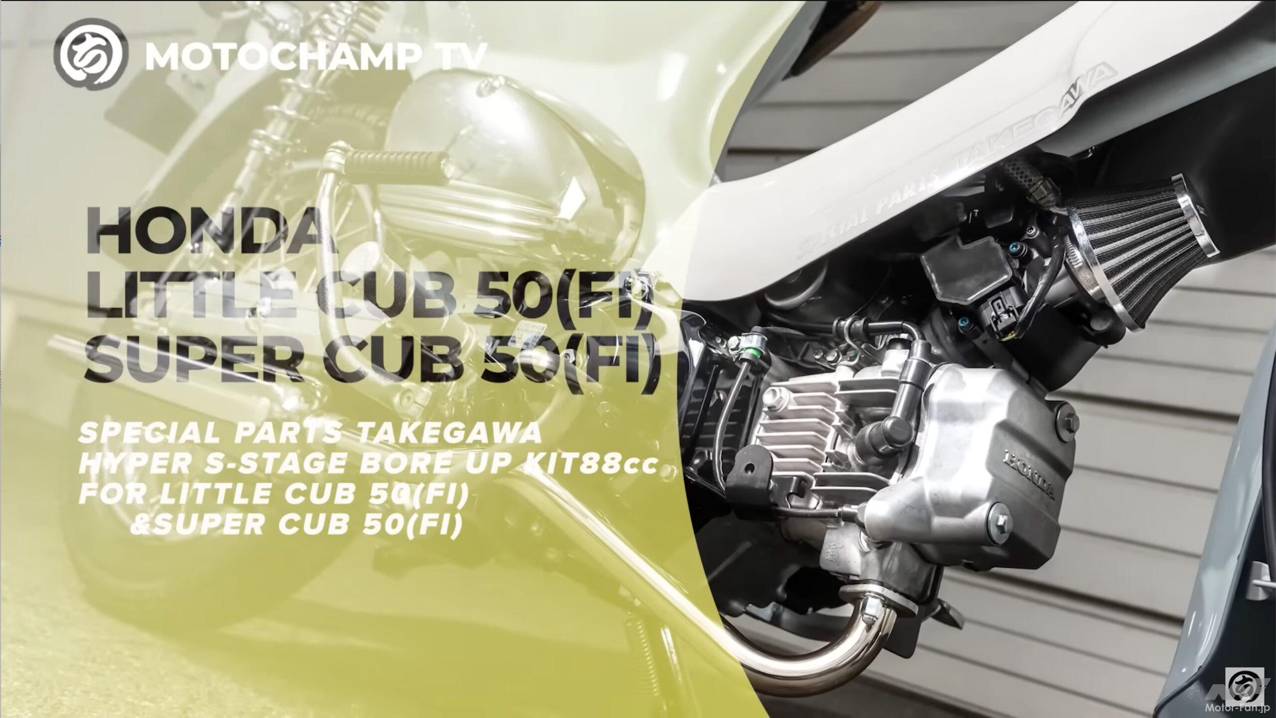 今回はスペシャルパーツ武川から発売されている「ハイパーSステージボアアップキット88cc」に注目してみたい。ユーチューブで各種動画を無料配信しているモトチャンプTVでは、「リトルカブのエンジンを50ccから88ccにボアアップ!」という回がある。今回はこの動画をダイジェストにまとめつつ、88cc化したリトルカブの実力を紹介してみたい。