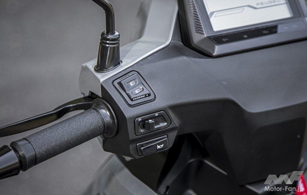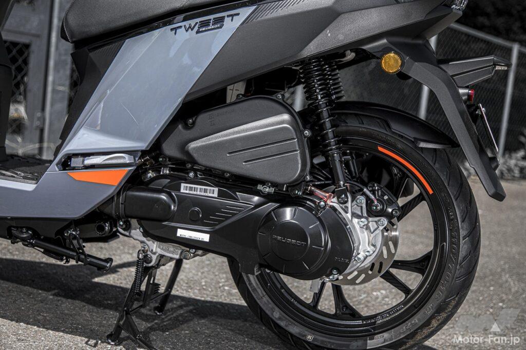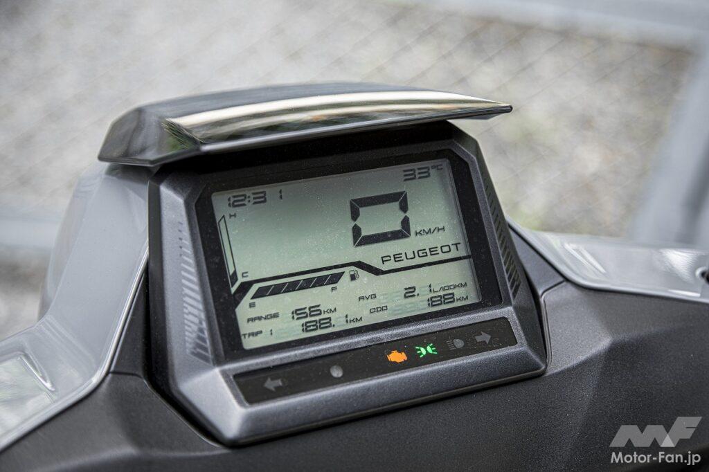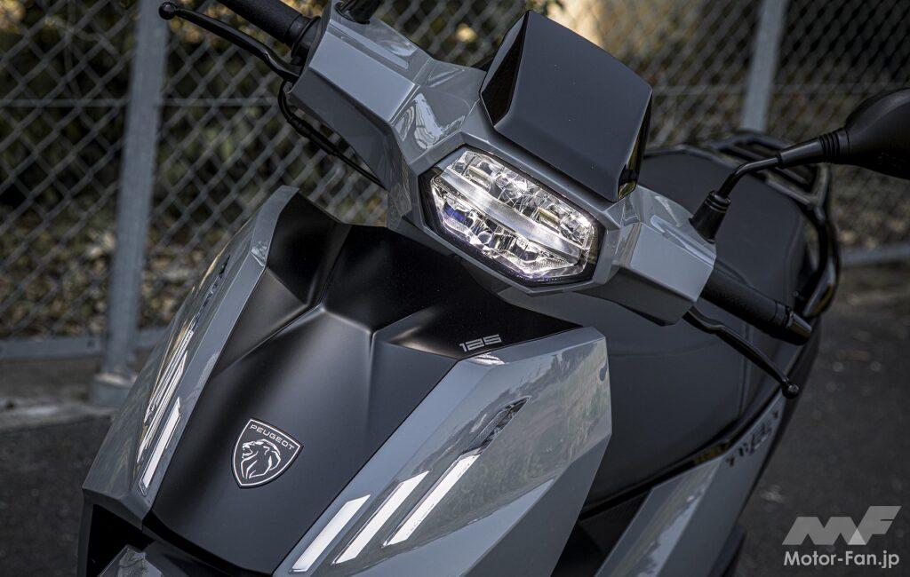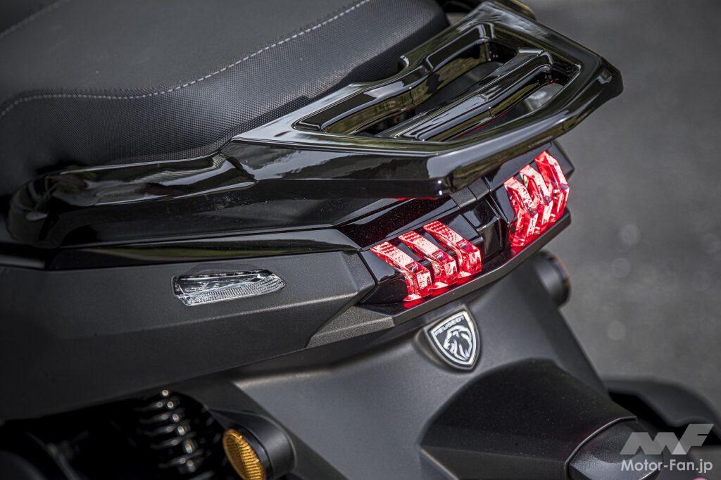 エッジの立ったシャープなボディラインが新時代のモデルらしさを表現しています。フロントカウルには、プジョーブランドのアイデンティティである「ライオンズクロー」を模したLEDのデイタイムランニングライトがあしらわれています。さらに、LEDのテールランプにも同様の意匠が採用されていて、個性的かつ特徴的なデザインを実現しています。 ツイートにはこの125と200があるのですが、ボディは200がベースになっているようで、原付2種としてはやや大柄です。都市部での移動が中心の用途ではマイナスの要素になるかもしれません。しかし休日にちょっと遠くまで足を延ばしてレジャーを楽しみたいという人にはちょうどいいサイズだと思います。