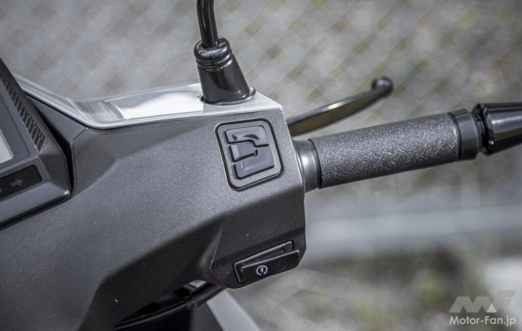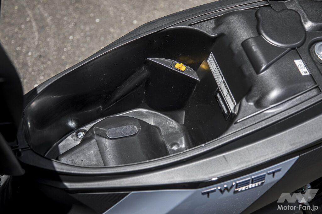 スクエア形状のLCDメーターは日中でも見やすく、スイッチ類の操作性にも違和感はありません。またフロント部にはキー付きグローブボックス、USBソケットが装備してあるので、日常の使い勝手は良さそうです。もちろんシート下はヘルメット1個が収納できるトランクになっています。