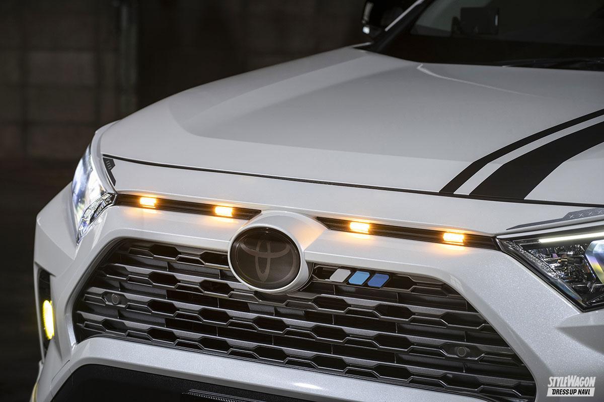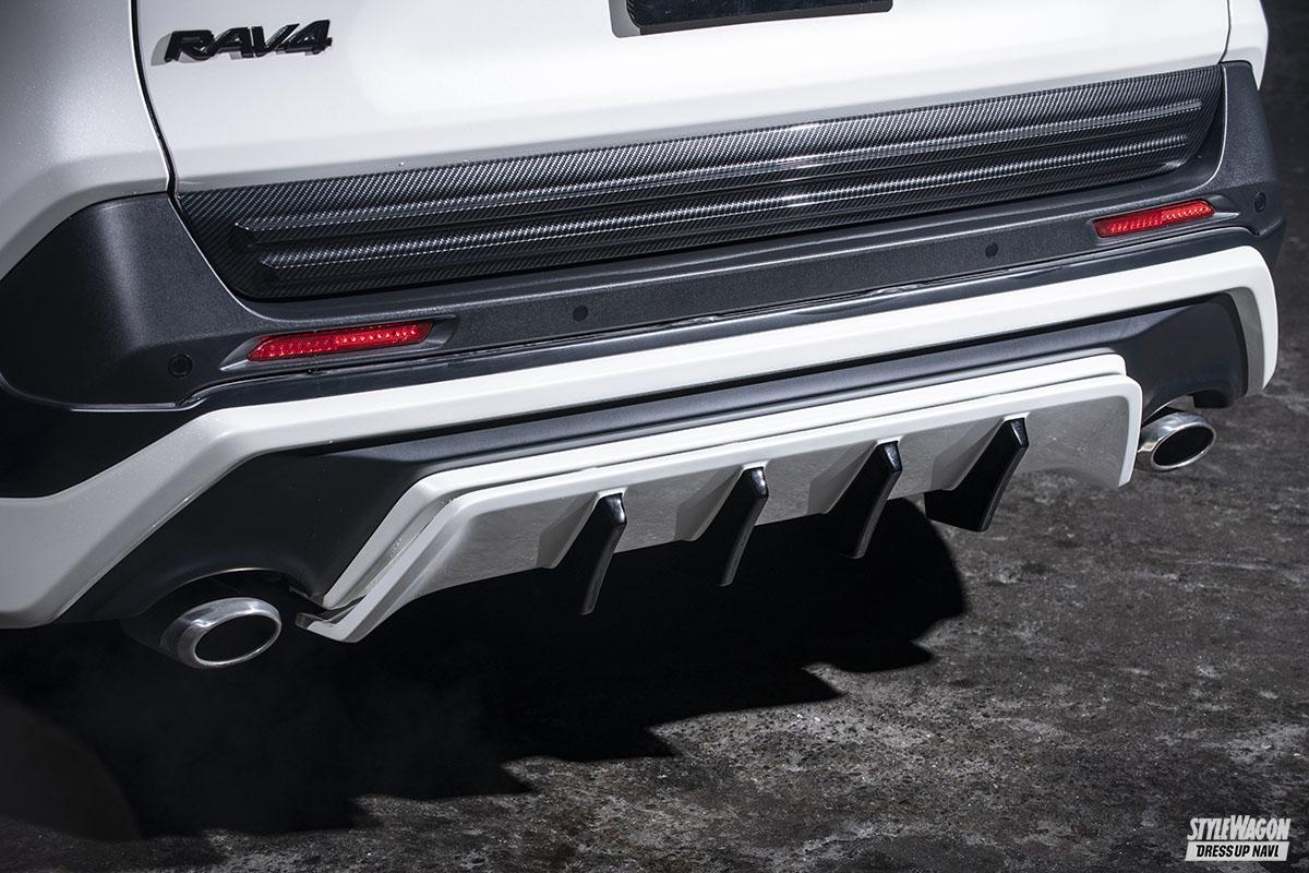パーツ 【トヨタ 50系RAV4】TRD仕様だけじゃ物足りない!追加カスタムでローダウンもアリなストリートオフ仕様へ【写真・2枚目】 ダブルエイト/RAV4 TRDストリートモンスター用 フロントセンタースポイラー 写真のデモカーは前後サイドスポイラーは未装着 リアディフューザー リアディフューザーはわずかに浮いた形状でセットアップされる設計。本格的なスポーティエアロとしてのこだわり部分だ。 ダブルエイトで人気のボンネットフードカバーはあえて装着せず、ラインデカールでフロントマスクにアクセントをプラス。 スーパースリム形状ラインの根元(後部)に少しアレンジを加え、精悍なフェイスを作り出しているアイライン。 フロントエンブレムのサイズにカッティングされた専用スモークフィルム。さり気ない部分だが印象は激変。価格は2970円。 ブレーキ スモール 非点灯 ダブルエイト/RAV4 アドベンチャー用 この画像の記事を読む