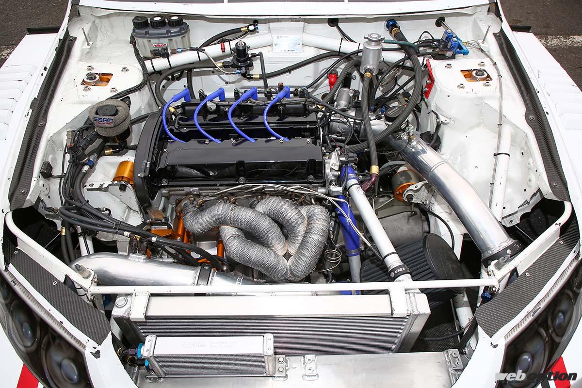ちなみに、インマニ周りのモディファイに関しては“エスコート”塩原代表がインディカーのエンジンメイキングから着想を得たものとのこと。インジェクターの取り付け位置と角度を改良した結果、それだけで100ps近いパワーアップを達成したというから驚かされる。