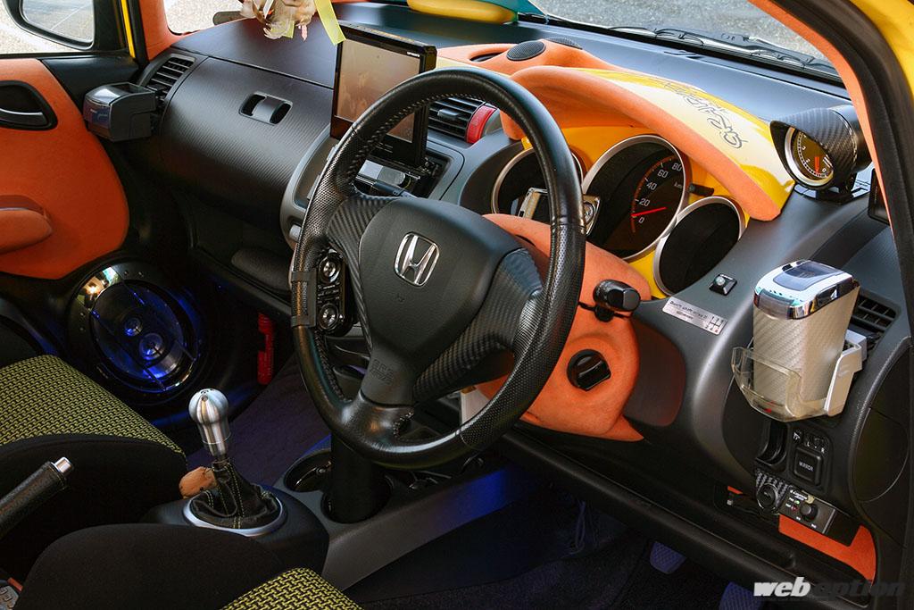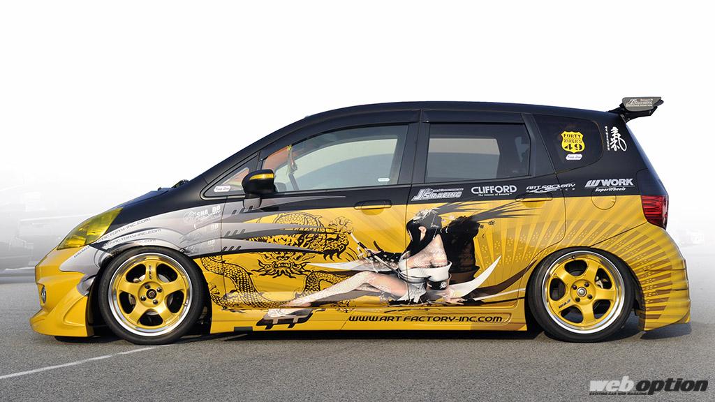 GD3型フィットに往年のスポコンエッセンスを注ぎ込みながら、個性的なドレスアップ仕様へと仕上げたオーナー車両の登場だ。