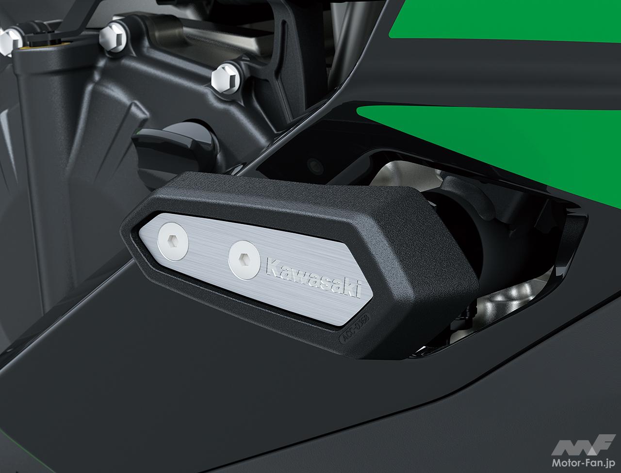 ・「Ninja ZX-4R SE」はスモークウインドシールド、USB電源ソケット、フレームスライダーを標準装備(Ninja ZX-4RR KRT EDITIONはオプションアクセサリー設定)