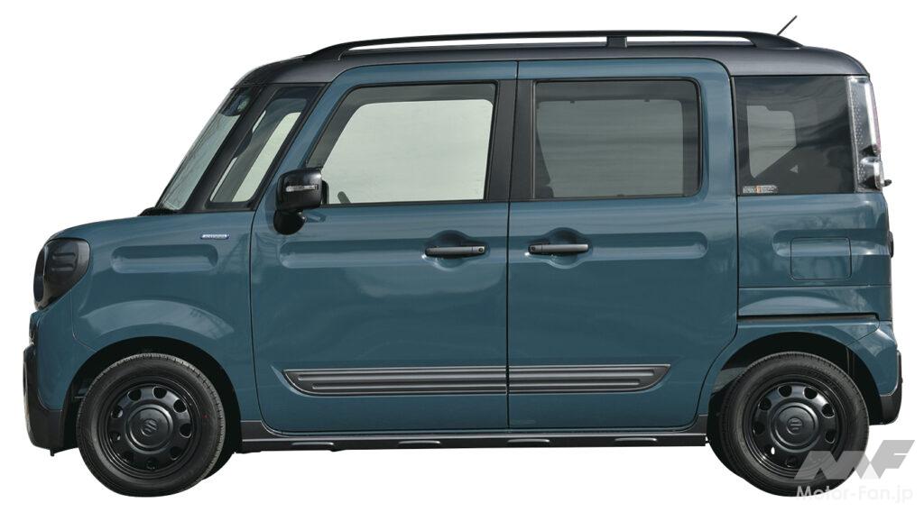 スペーシアとの違いは、エクステリアでは専用の丸形ヘッドライト、フロントグリル、前後バンパー、ルーフレールなど装備類。インテリアではメーターやシートステッチなどにオレンジのアクセントカラーを施し、ツールボックスをモチーフにしたメタリックなインパネアッパーボックスを採用。アウトドアテイスト&遊び心満点の世界を演出している。また、ホワイトのルーフ、ドアミラー、ホイール、サイドパネルによるツートーンカラーが施された、ワイルドさを抑えた特別仕様車のMY STYLEも加わっている。