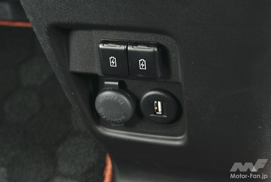 ただし、最低地上高はハスラーの180mmに対して、スペーシアの標準車と同じ150mm。ハスラーのような悪路に強い走行性能はもち合わせていない、見た目重視のクロスオーバーモデルなのである。とはいえ、運転席まわりはギア感あるもので、専用撥水ファブリックシート、防汚タイプのラゲッジフロアやシートバック背面を採用。アウトドアユーザ ーに響くに違いない。後席でも一年中、快適なドライブが楽しめる天 設置のスリムサーキュレーター、ワンアクションパワースライドドアといったスペーシアならではの快適装備、機能はそのまま継承されている。