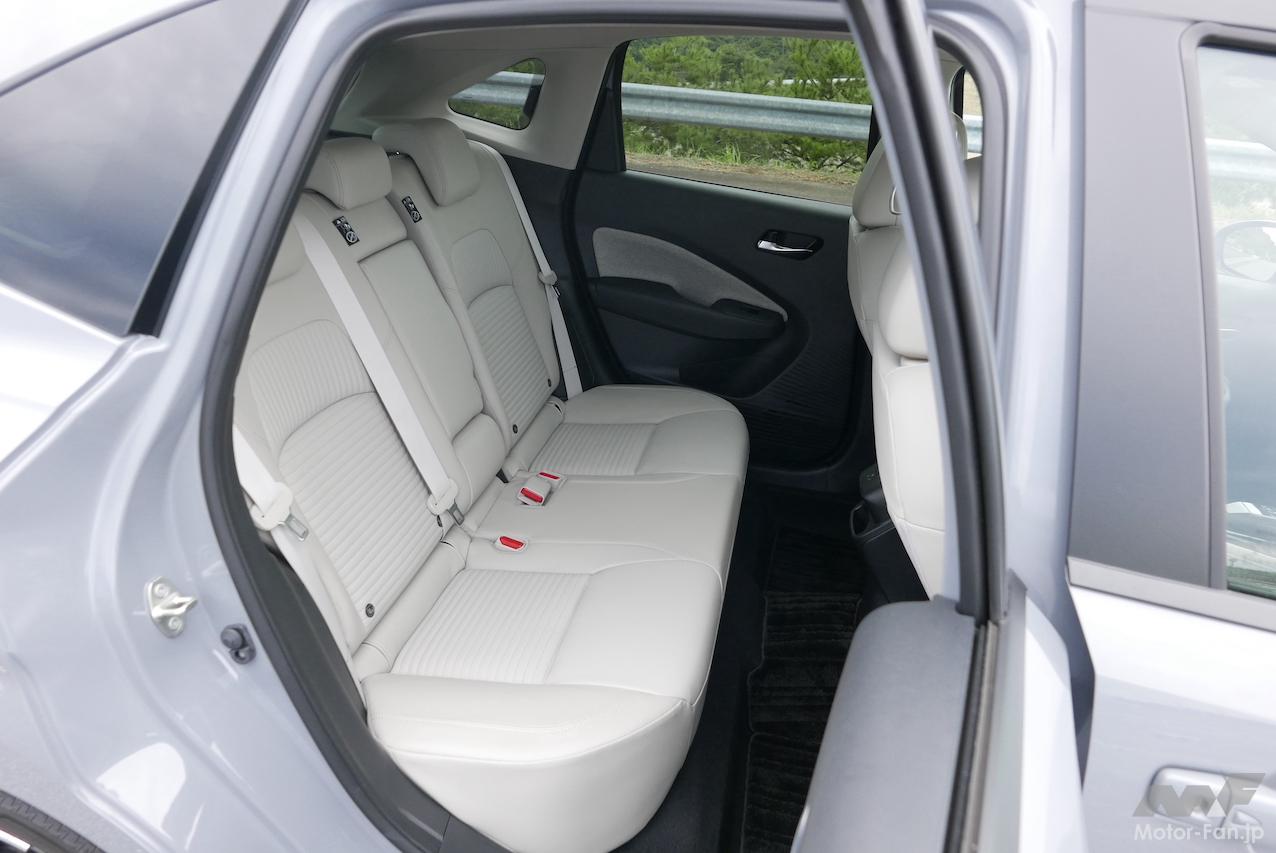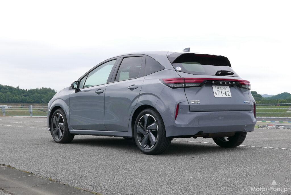エンジン始動のタイミングも外乱の音や加速音の上昇時に合せるかのように、静かにスタートしジワジワと回転を上げていくから、耳障りになることも少ない。速度とエンジン回転上昇の協調性に関しては、先代ノートと比較して格段に進化しているうえに、オーラ自体の遮音性の高さによって、静粛性はBEVに確実に近づいている。