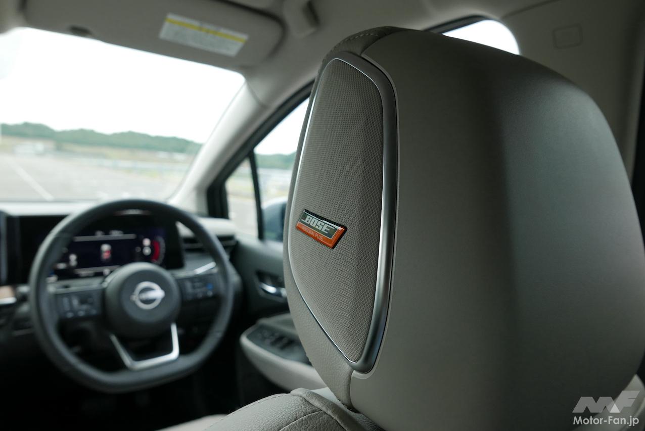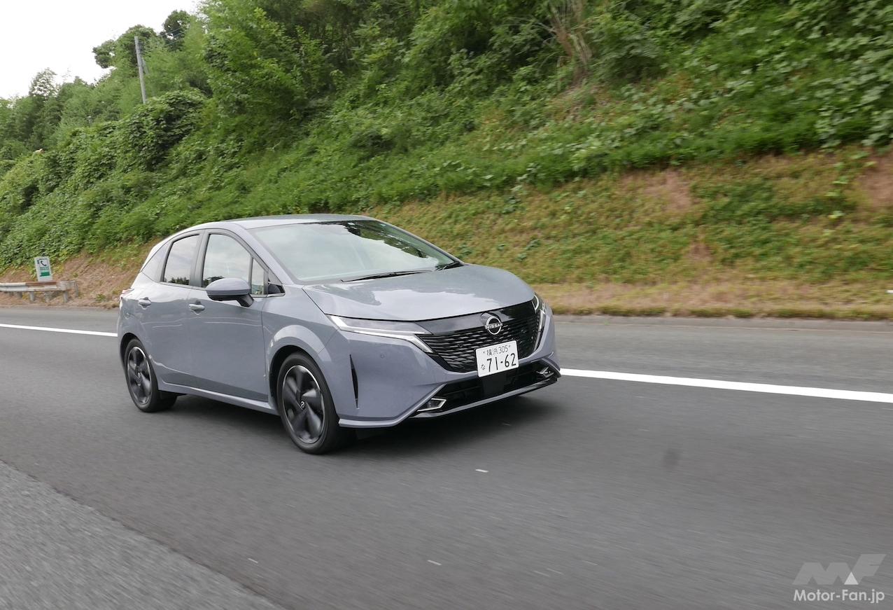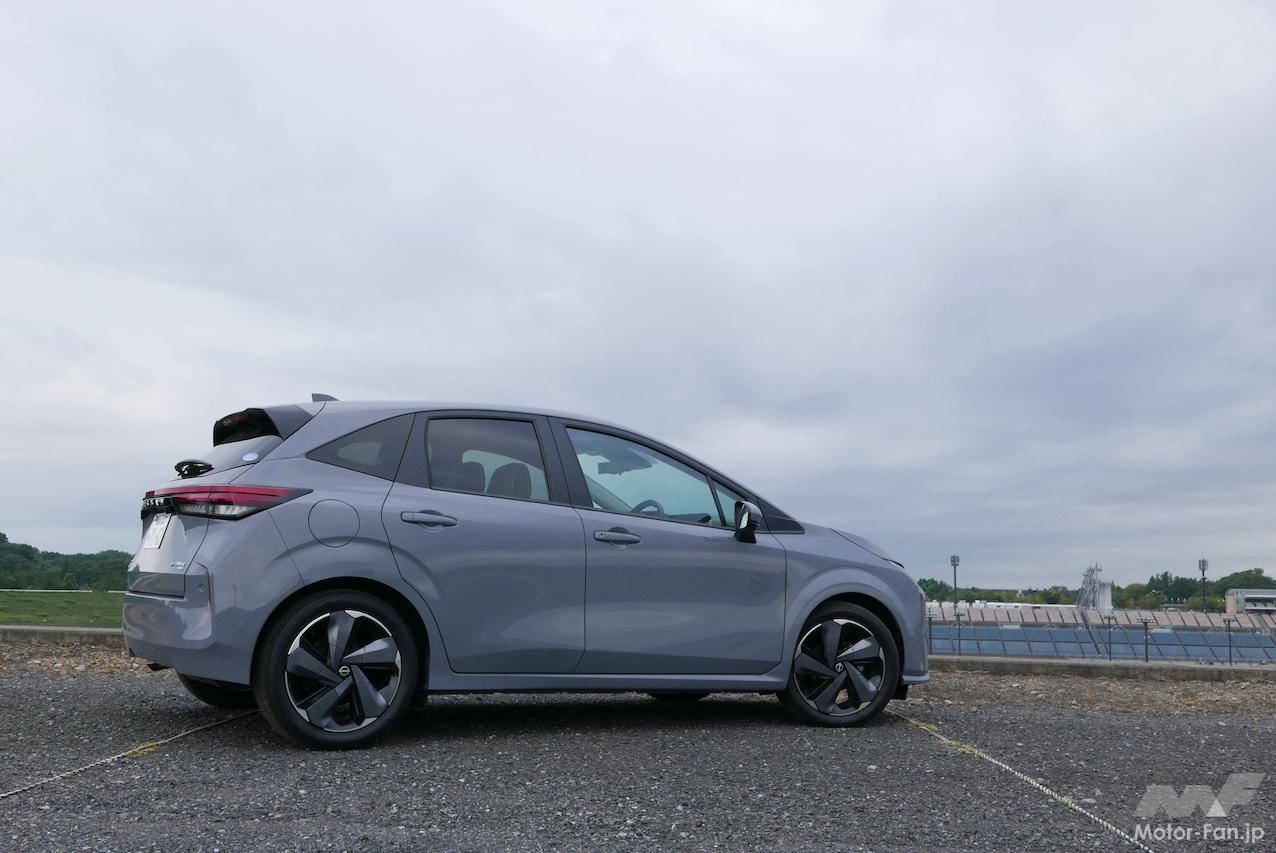 もっともBEVのアリアに比較すると、モーターの音や、補機類関係の作動音などに加えて、ロードノイズの侵入も小さいとはいえ、確実にある。エンジンが存在していることは事実だから、バランス良くノイズ処理をして総合的に静粛性を高めるという点では上出来と言っていいだろう。