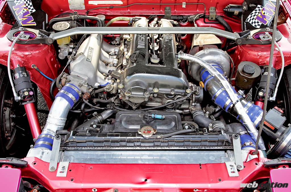 エンジンはS14に搭載される可変バルタイ(NVCS)付きのSR20DETをベースに、F1タービンとして知られるIHIのRX6タービンなどでポテンシャルを高めた400ps仕様。