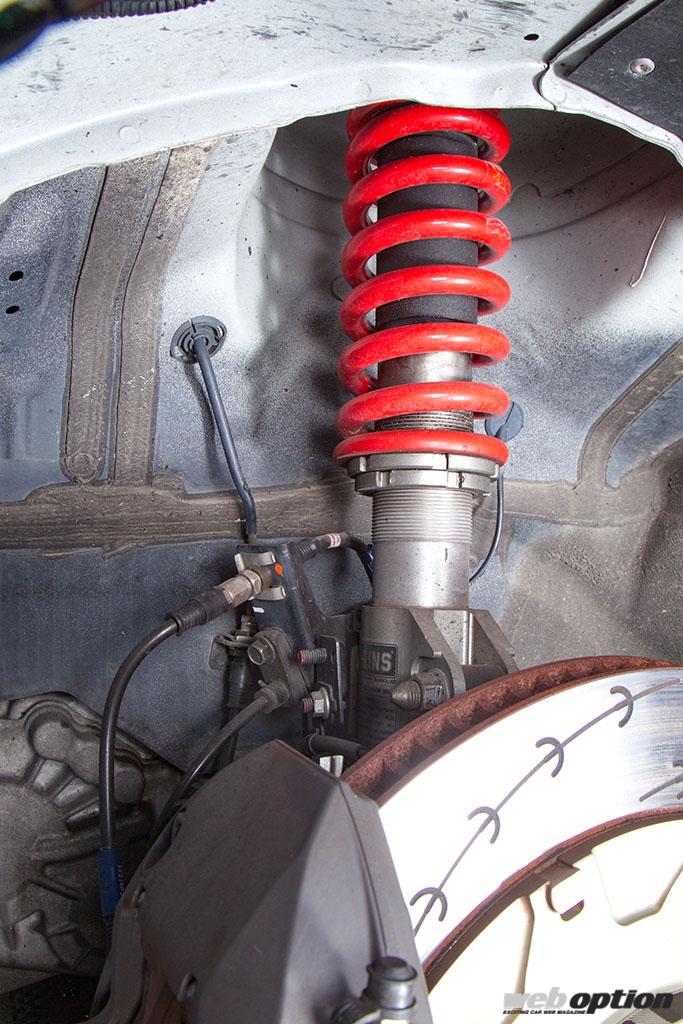 サスペンションには、オーリンズDFVベースのシグナルオートオリジナル車高調を装備。スプリングレートは、クスコの強化スタビライザーとのバランスを考えて前後14kg/mmで設定している。