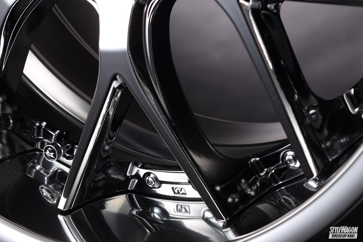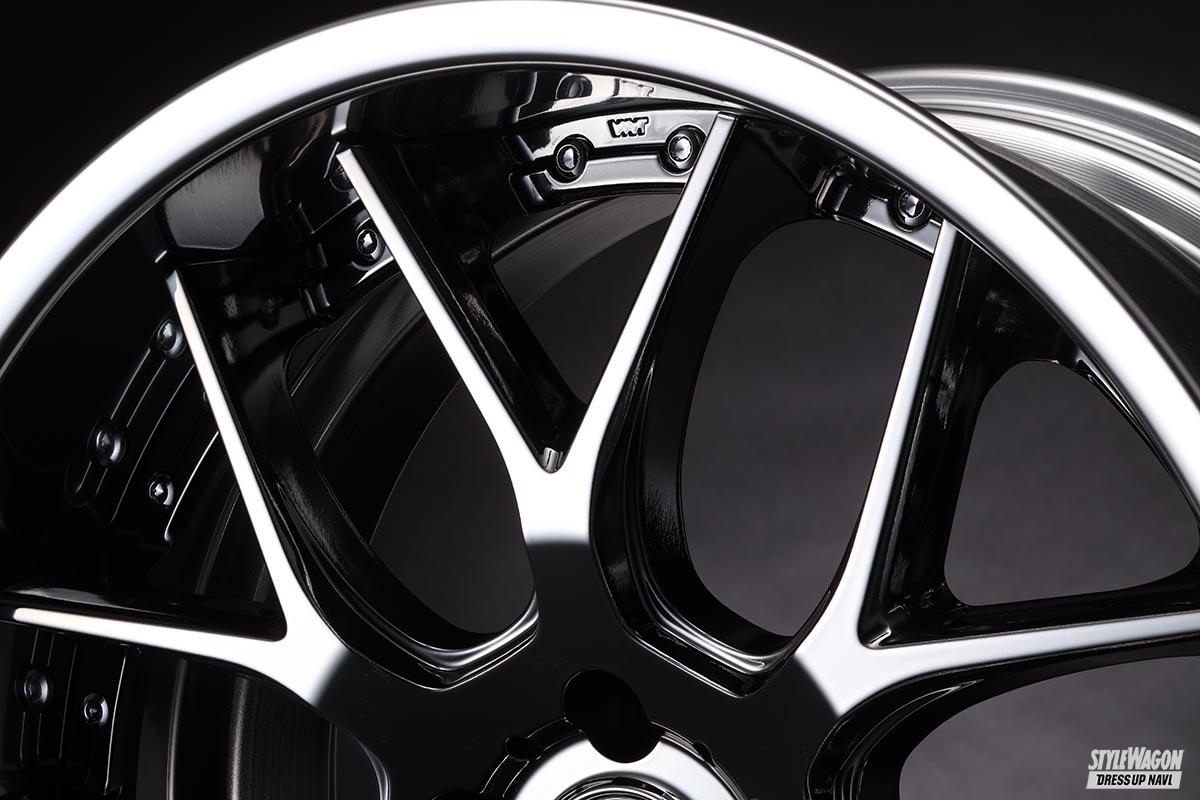 ホイール(カスタム) 【18〜21インチで幅広い車種に履ける】7交点のメッシュホイールがスポーティかつプレミアムな足元を作り出す【写真・4枚目】 MAVERICK 1307M 清楚なプレミアムシルバーも魅力だが、適度に締まったメタリックブロンズも注目。SBCは大口径サイズのみ。 ポークはキリッとエッジが効いた細身の2×7。ただし厚みがしっかりで、華奢さはなし。 先端から途中までは緩やかに、交点からはより強い傾斜で落ちる二段階コンケイブ。迫力。 リムをしっかり深く取れ、インセットをミリ単位で指定できるのも魅力。ピアスも高品位。 センターはグッと落とし込んだ位置に。シンプルで飾らないキャップデザインも高級感大。 この画像の記事を読む