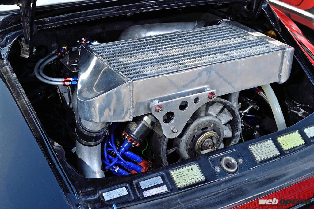 巨大なインタークーラーが鎮座する心臓部は、腰下をRUF BTRキットで3.3Lから3.4Lにスケールアップし、ヘッドもDougherty Racing製ハイカムの投入を軸にくまなく手が入る。そこにワンオフのEXマニを介してウエストゲート式のボルグワーナーS300SXEタービンをインストール。モーテックによる綿密な制御によって、ブースト1.4キロ時に600psを発揮するハイスペックだ。