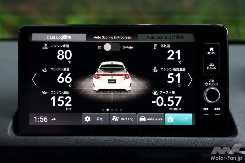 9インチワイドの「ホンダコネクト」対応カーナビも標準装備となるが、こちらにもタイプR専用の機能が備わっている。それがデータロガー「Honda LogR」だ。