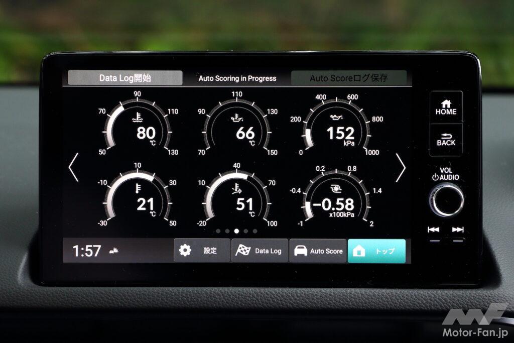 日常のドライブでも、6連メーターを表示しておけばスポーツ心が高揚することは間違いない。さらに、市街地でのスマートな運転を採点する「オートスコア」モードも持つ。上手なドライバーが運転すると速く走れるスポーツカーというだけでなく、ドライバーを育ててくれるスポーツカーとしての一面も持っているのだ。