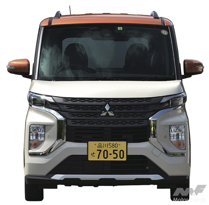 軽のスーパーハイトワゴンでは標準とカスタムをラインナップするのが定番だが、三菱のeKスペースはカスタムではなく、外観にSUVテイストのデザインを採用した、eKクロススペースを用意している。eKクロススペースのフロントマスクは三菱SUVのデザイン手法と同じ、ダイナミックシールドを採用。前後のバンパーにスキッドプレート風のデザインを施し、SUVテイストが強調された堅牢なスタイリングは、ミニバンのデリカD:5を彷彿とさせる力強さがある。
