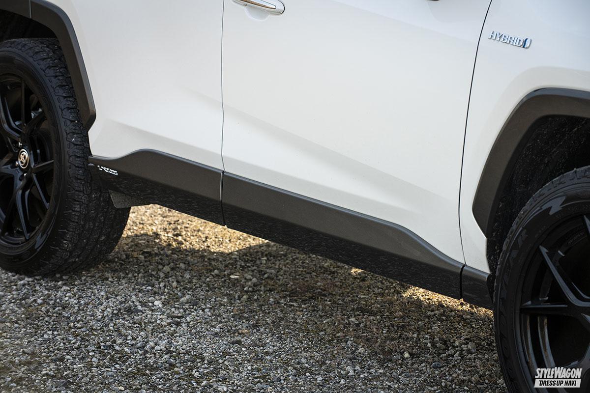 新プラン「アーバンカラーコーディネーション」は、SUVの特徴であるボディ裾まわりの黒樹脂に着目したカスタム。特有のシボをスムージングしつつ艶あり塗装し直すメニューを筆頭に、ウインドウまわりのメッキを覆い隠すテープなど、仕様変更して付け直す“純正→純正”のエアロレスカスタムを提案中だ。
