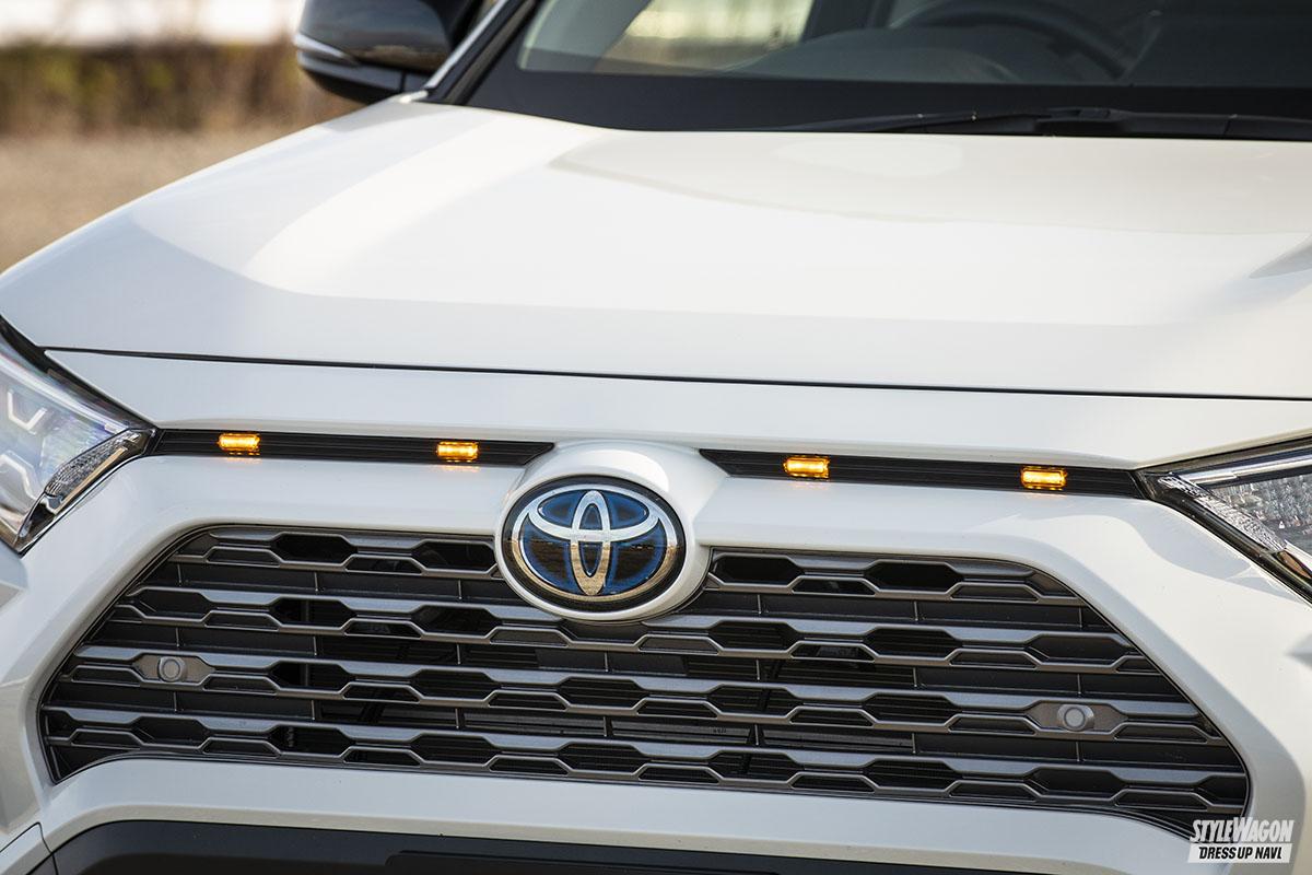 デモカーではそれ以外にもUSマーカーデカールや、グリルの隙間を縫ったLEDといったワンポイント効果の高いパーツも。いかにもオフしてます! という直球カスタムにはない自然なアプローチはある意味かなり新鮮だ。これを上手く使いこなしたら、確実に渋い1台に仕上がることは間違いない。