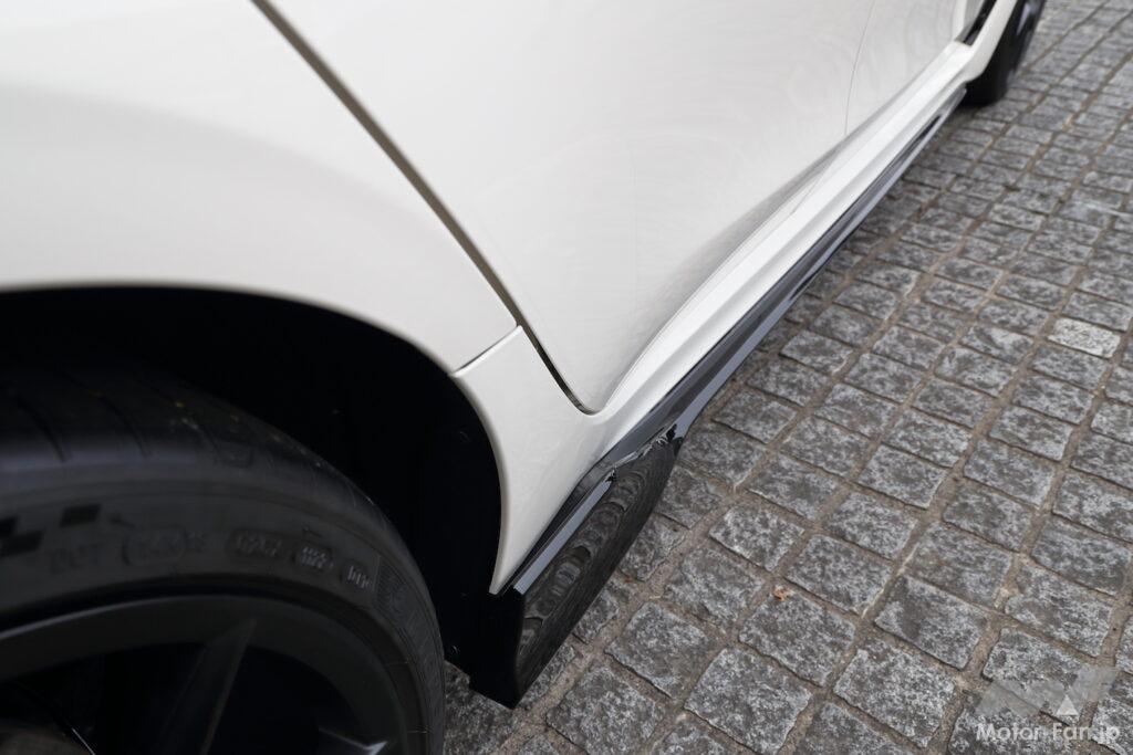 ブラックのサイドシルガーニッシュは後端部分がボディから浮き上がった形状となっているが、これもリヤタイヤに向かう空気を整流することが狙い。一方、フロントフェンダーはホイールハウス内の空気を抜くためのアウトレットが設けられている。こうしたエアロダイナミクスに関する知見ではHRCをはじめとしたホンダの四輪モータースポーツのノウハウが活かされているという。