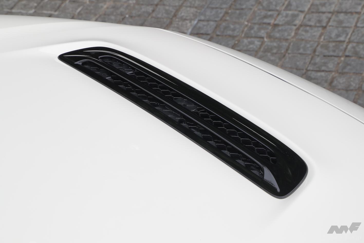 ラジエターファンを従来型の2個から1個に減らすことで高速走行における冷却風の抜けを重視しているというのも、安定した高速域での走りを期待させるエピソードだ。ラジエターの前に置かれるインタークーラー(ターボチャージャーにより過給された吸気を冷やす装置)は従来の9段から10段へコア増しが行われ、圧力損失を低減しているが、これも最高速領域で効いてくる改良といえる。