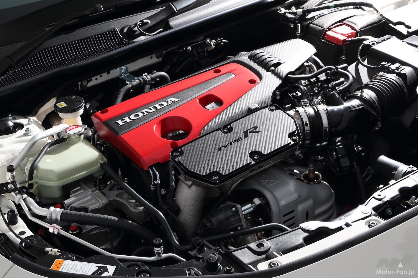 さて、エンジンこそ、直近3世代のタイプRに共通する2.0L VTECターボ「K20C」型となっているFL5だが、そのスペックは最高出力243kW(330PS)、最大トルク420Nmと増大している。電動化技術をまったく使っていないK20C型エンジンゆえに、高出力はすなわち冷却との戦いになることは自明だ。