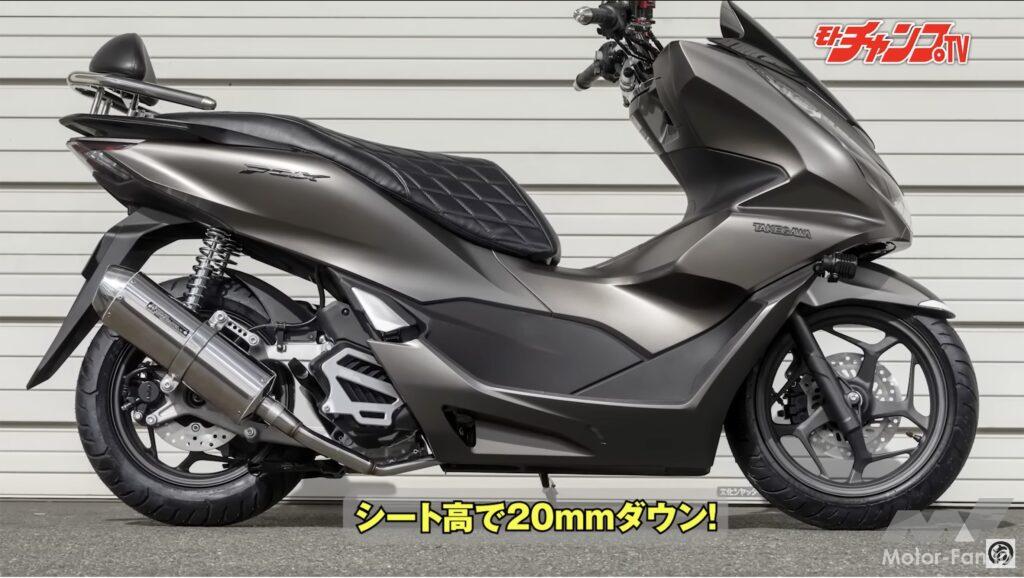 今回紹介するのはユーチューブで動画を無料配信しているモトチャンプTVのプログラムから「マイナーチェンジで新型となったPCXの注目パーツ!」という回の内容をダイジェストにまとめたもの。動画では変更したマフラーのサウンドを聞けるので、ぜひ動画もご覧いただきたい。