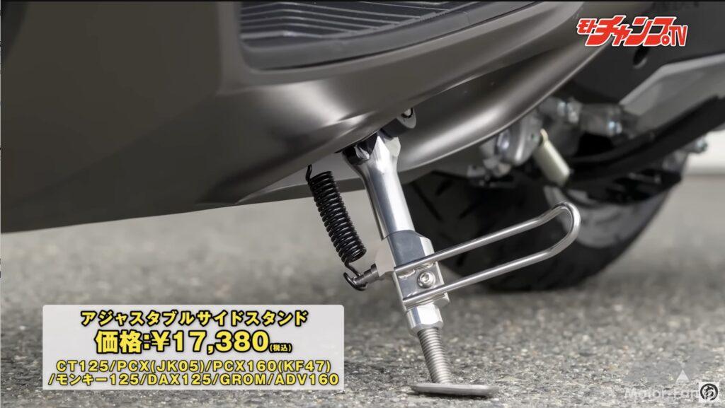 ローダウンさせるとノーマルのサイドスタンドでは角度がキツくなる。ローダウンさせるなら車高に対応させることが可能な調整式のアジャスタブルサイドスタンドも併用したい。好みの高さに調整できるので、別のローダウンキットを用いても使用することができる。またローダウン+マフラーを変更した場合、黒一色の純正ラジエターカバーが地味に感じられることだろう。そこでシルバーカラーのラジエターコアガードも用意されている。