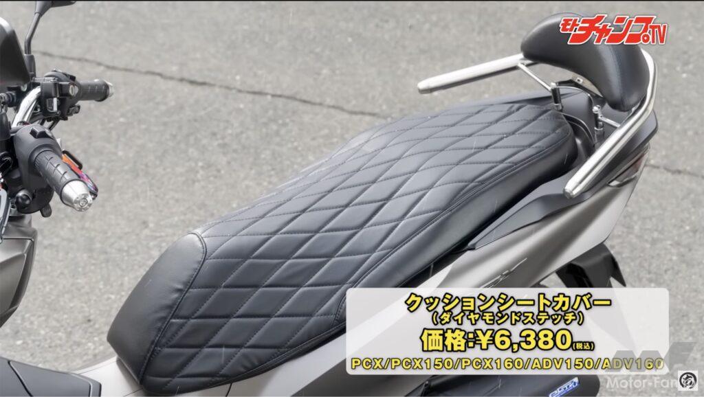 シートまわりで注目なのがダイヤモンドステッチによりルックスを大きく変えてくれるクッションシートカバー。純正のシートに被せるだけなので手軽にルックスを変えられるうえ、シートの保護にもなるし座り心地にも貢献してくれる。同時にステンレス製グラブバーを装着すると、よりルックスに変化を与えられる。タンデムする機会が多いライダーにはぜひ装着をおすすめしたい。大きめのバックレストが標準装備されているので、転落防止に効果絶大だ。