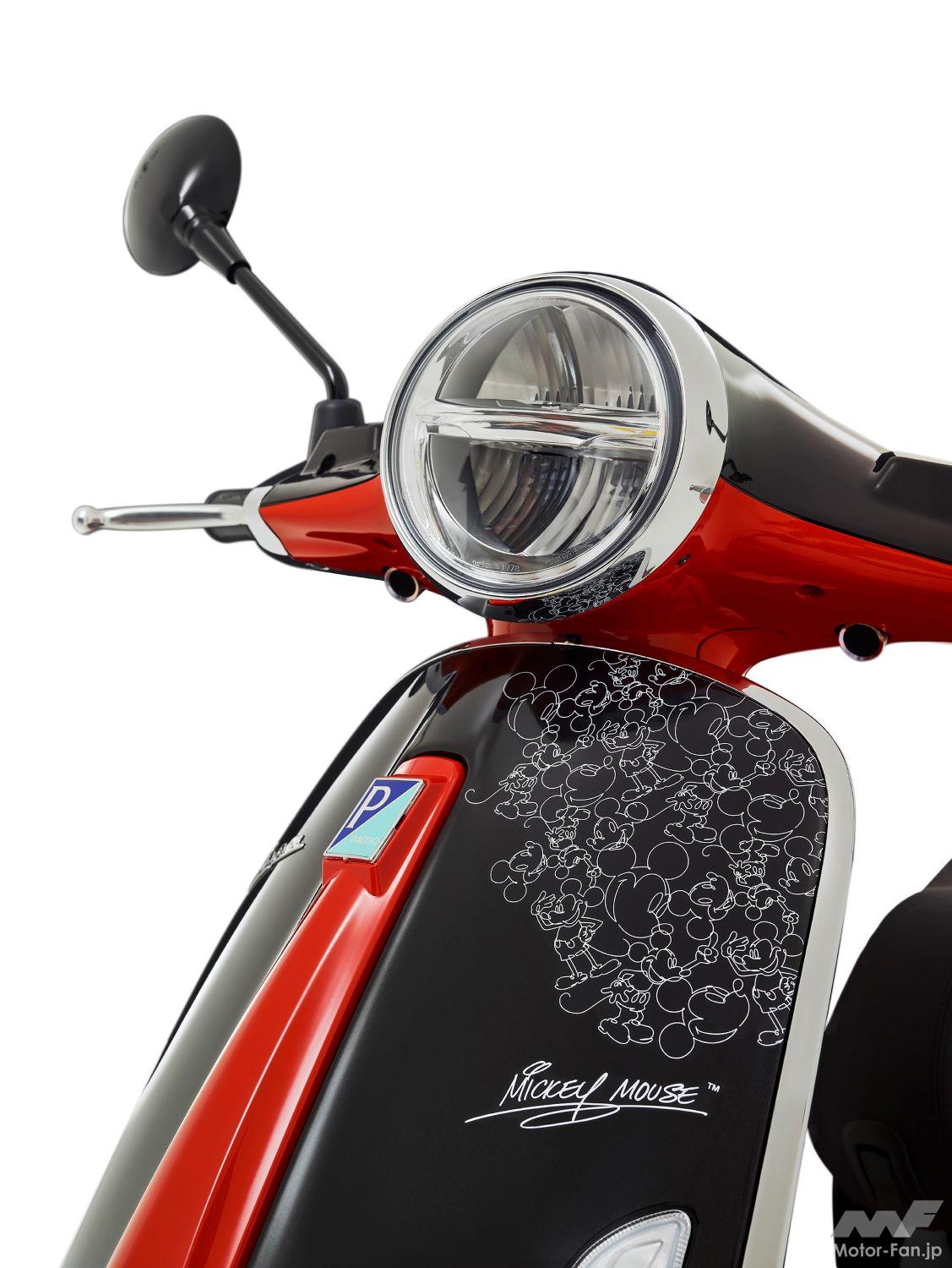 ピアッジオグループのグローバル戦略・製品・マーケティング・イノベーション最高責任者であるミケーレ・コラニーノは、このコラボレーションについて次のようにコメントを発表。「夢は、このような複雑な時代であっても、私たちに楽観的な未来への展望を与えてくれます。ベスパのような時代を超越したアイコンは、ディズニーの生誕100周年という特別な機会に、ミッキーマウスのような同じく時代を超越したアイコンを、創造性、想像力、陽気さ、そして楽しさ、つまりベスパを常に支えてきたその価値観への賛辞を込めて、祝わずにはいられません。ベスパとディズニーのこのコラボレーションは、『誰もが想像したことを自由に表現できる 』という共通の夢を持つ2つの歴史的企業の祭典を象徴しています。」
