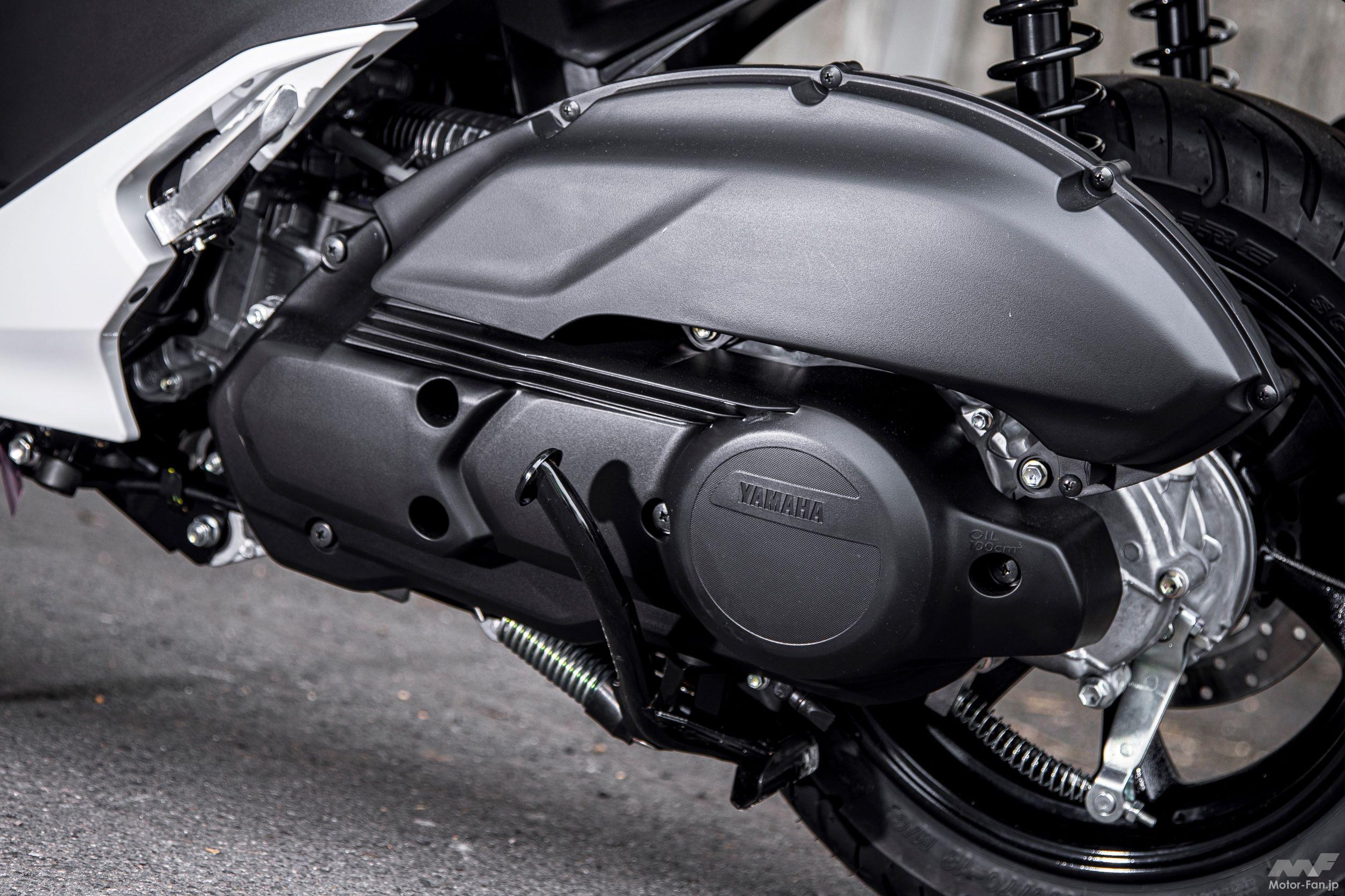 155のエンジンフィールは、125と同様にスタートからジェントルで、Uターンのような小回りでもライダーを慌てさせることがない。新設されたアイドリングストップは、停止と始動のタイミングに不満はなく、またSMGによって始動時のギヤ鳴りがないなど、エンジンの上質感向上に大きく貢献している。