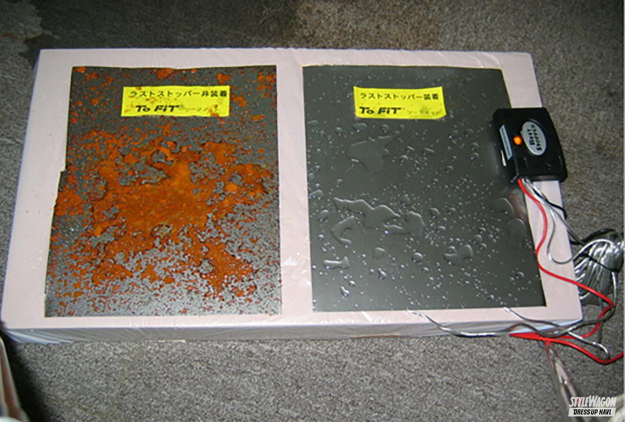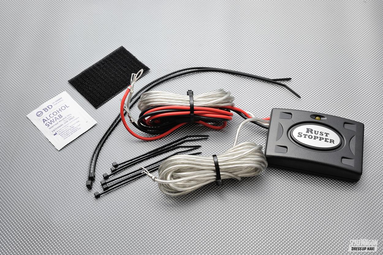 同アイテムを装着すると、微弱な電子をボディへと流すことで発生する化学反応によって、サビの発生を抑制。ボディへの接続は2本(機種により1本)のみと簡単に取付可能というお手軽さも魅力。大切な愛車を見えぬ劣化から守るために、ラストストッパーを是非導入してみて欲しいのである。