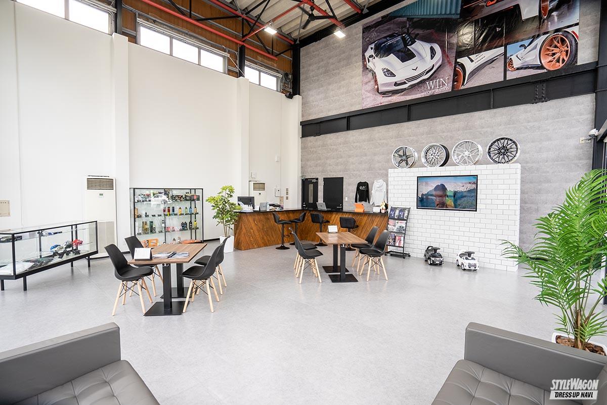 開放感あふれるガラス張りのショールームにはピットも併設されており、日常的な点検整備からカスタムまで幅広く対応。ユーザーの理想形を具現するだけでなく、末永くカーライフをバックアップする「フォルテイズム」が息づいている。