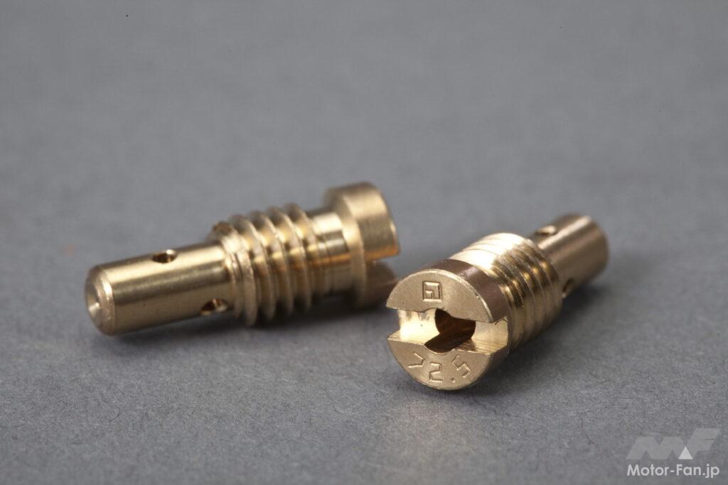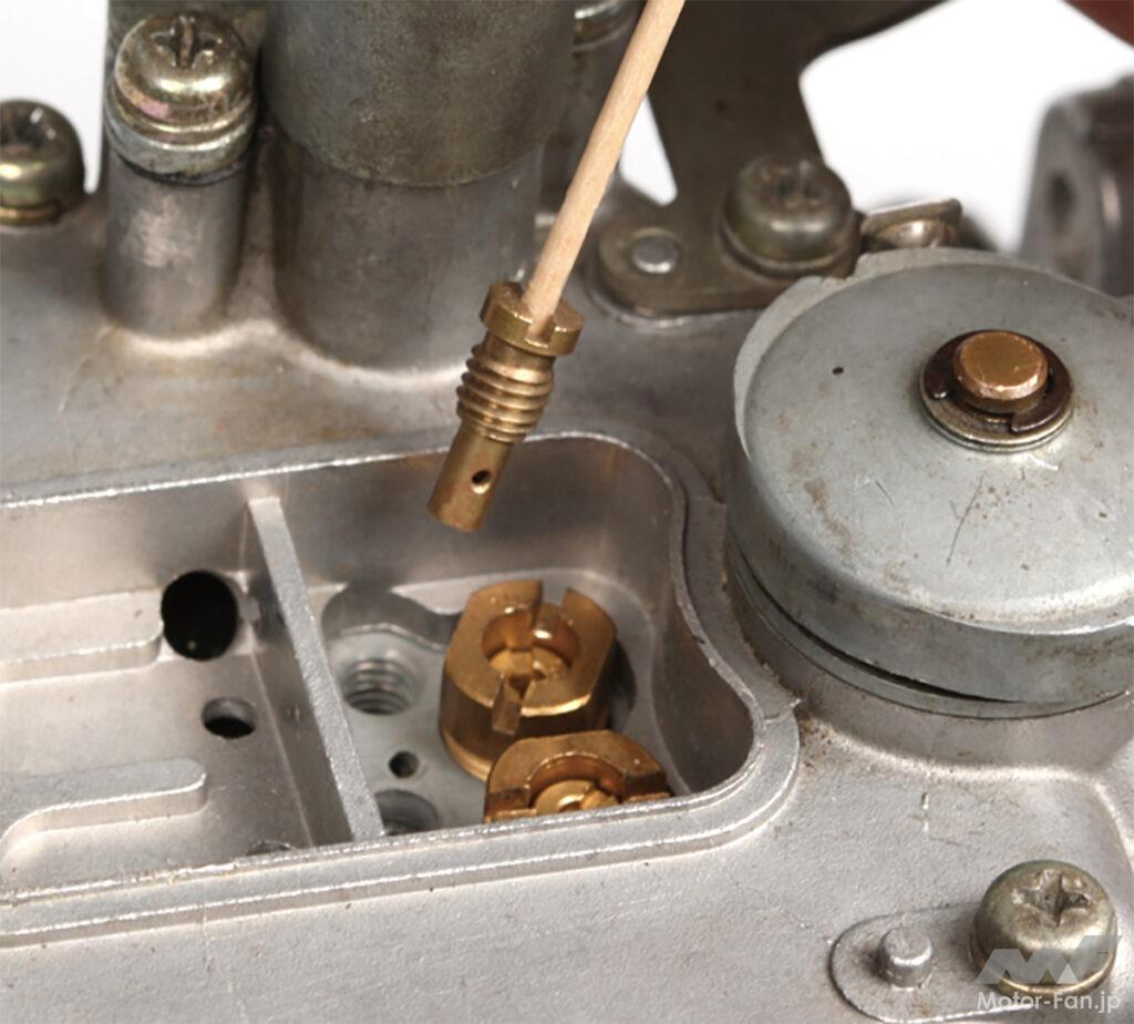 上の2つの調整で不調が収まらないのであれば、もっと大きく燃調を変える必要がある。その場合は主に低回転域で作用するスロージェットを交換してみよう。問題は現状が濃いか薄いかの判断だけど、パイロットスクリューを回してみて、かなり開いても回転が上がるようならジェットが小さい可能性が高く、開いても反応が鈍いときはその逆だ(WEBERは差が分かりづらいモデルもあるようだ)。エンジンの仕様にもよるが、これでダメなら3番手くらい違うサイズのジェットを試しに装着してみて、エンジンの反応を見ていくといいだろう。