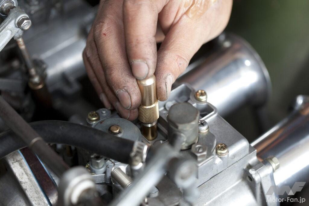 油面の調整は、SOLEXのようにカバー側にスクリューがある場合は早いが、無い場合はフロートの付け根を曲げておこなうので、多少の慣れが必要だ。