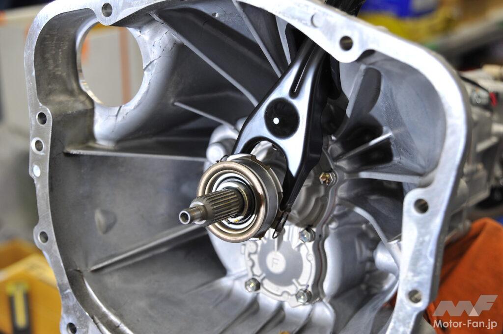 ベアリングが大きくなったこととアタッチメントの形状によって、レリーズベアリングがスライドして摩耗する範囲が倍以上になり、多くの面積で受け止めることでノーマルよりも遥かに摩耗しにくくなった。