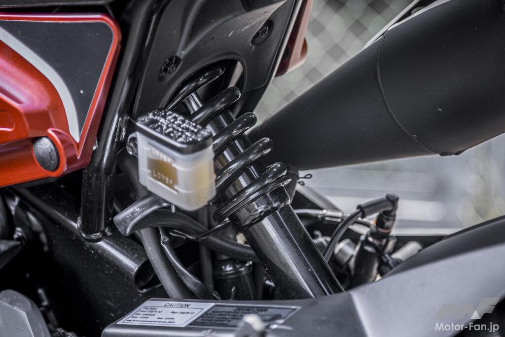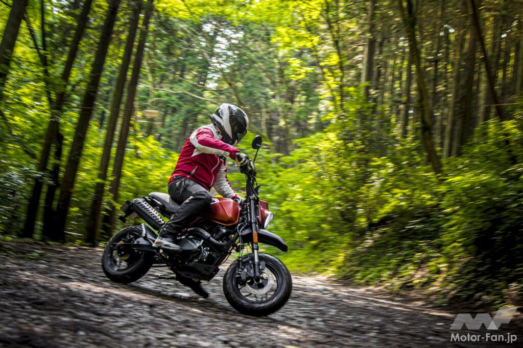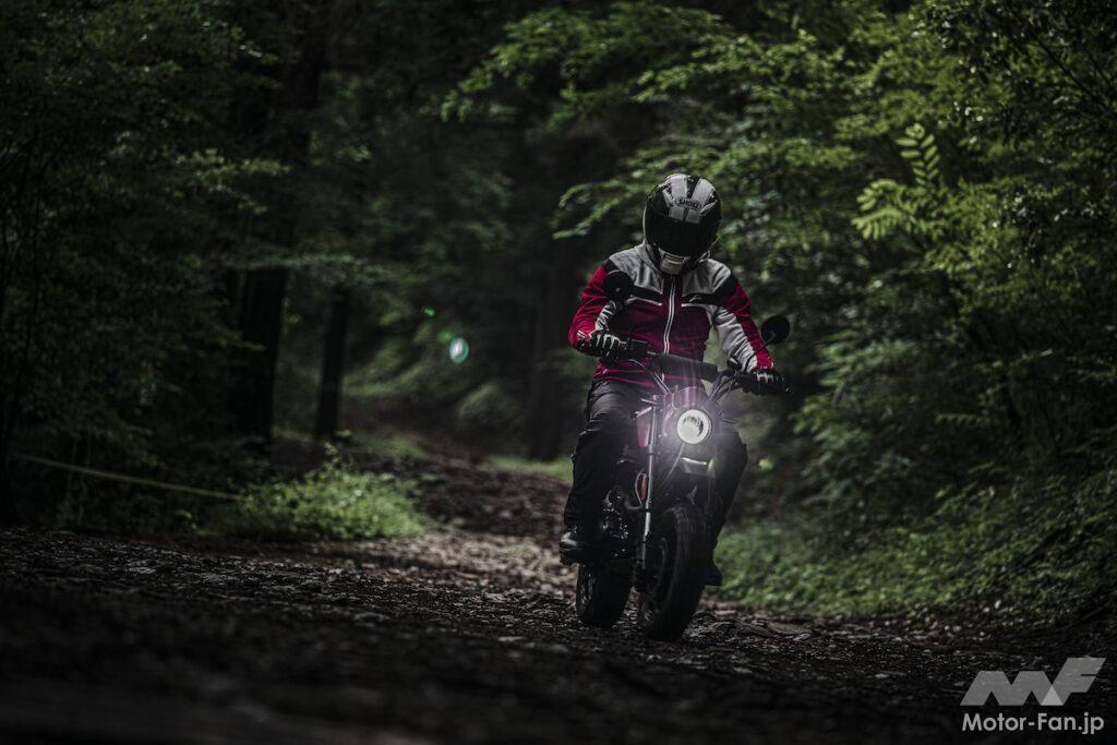 フロントに比してリヤショックが少しハードかな、と感じるシーンもたまにあったが、このあたりは入手してからのセッティング、カスタム余地として残しておこう。ブレーキフィールは可もなく不可もなく、マシンの減速を淡々とこなしてくれる。過敏すぎない反応はビギナーにもきっと優しいはずだ。なによりコンパクトな車体サイズが、常に安心感が途切れさせない。いつもバイクが自分の手の内にある……というフレンドリーさは、こんなにも心を弾ませてくれるのだ。