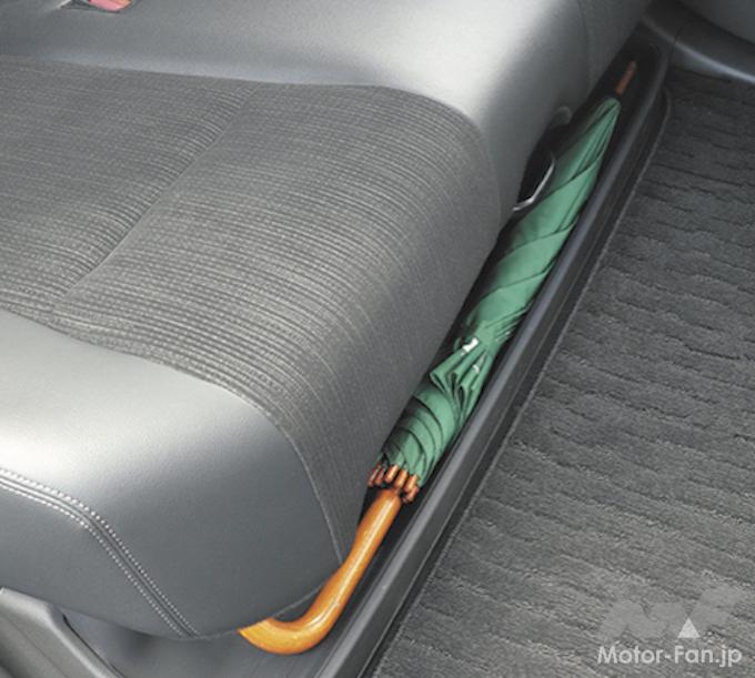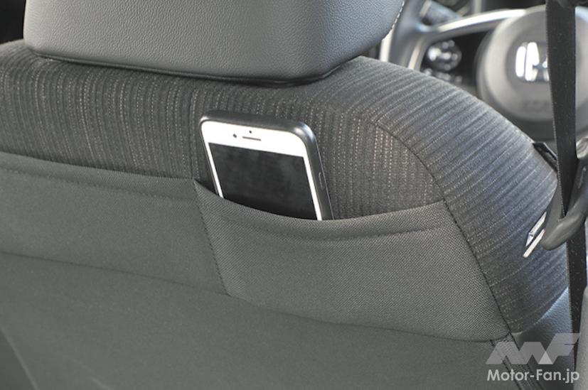インテリアもすっきりとしたシンプルな仕立てで、しかし全方向の視界の良さ、自然で快適な着座感とペダル配置にこだわりがある。特に前席セミベンチシートの掛け心地はふんわりとしたソファ感覚。ステアリングの調整も自在で、あらゆる体形の人が最適な運転姿勢をとることが可能だ。後席は前席以上にふんわりとした掛け心地が良い。スライド機構で最後端位置にセットすれば、320mm前後の膝回りスペースが出現。その快適感、広さに満足できる。