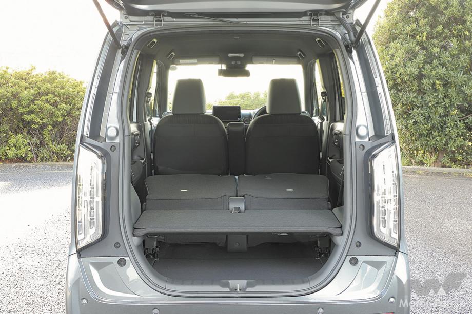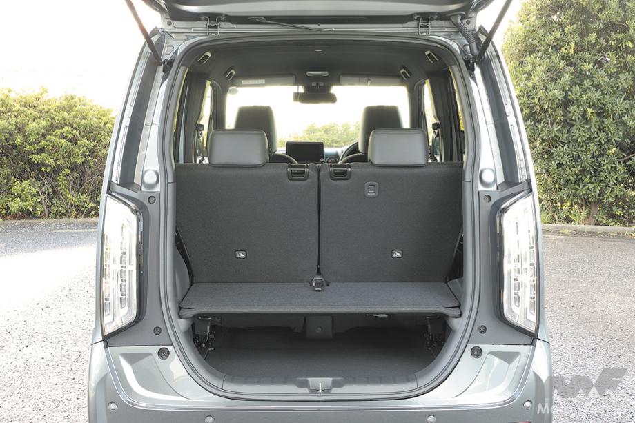 ハイトワゴンゆえの荷室の使い勝手も抜群。耐荷重50kgのラゲッジボードを用いた、荷物を上下に積み分けられる二段ラックモードが基本で、下段をトランク的に使うことができ、また上段はスーパーなどのカートの高さを意識した地上高730mm。日常的な積載性を高めている。