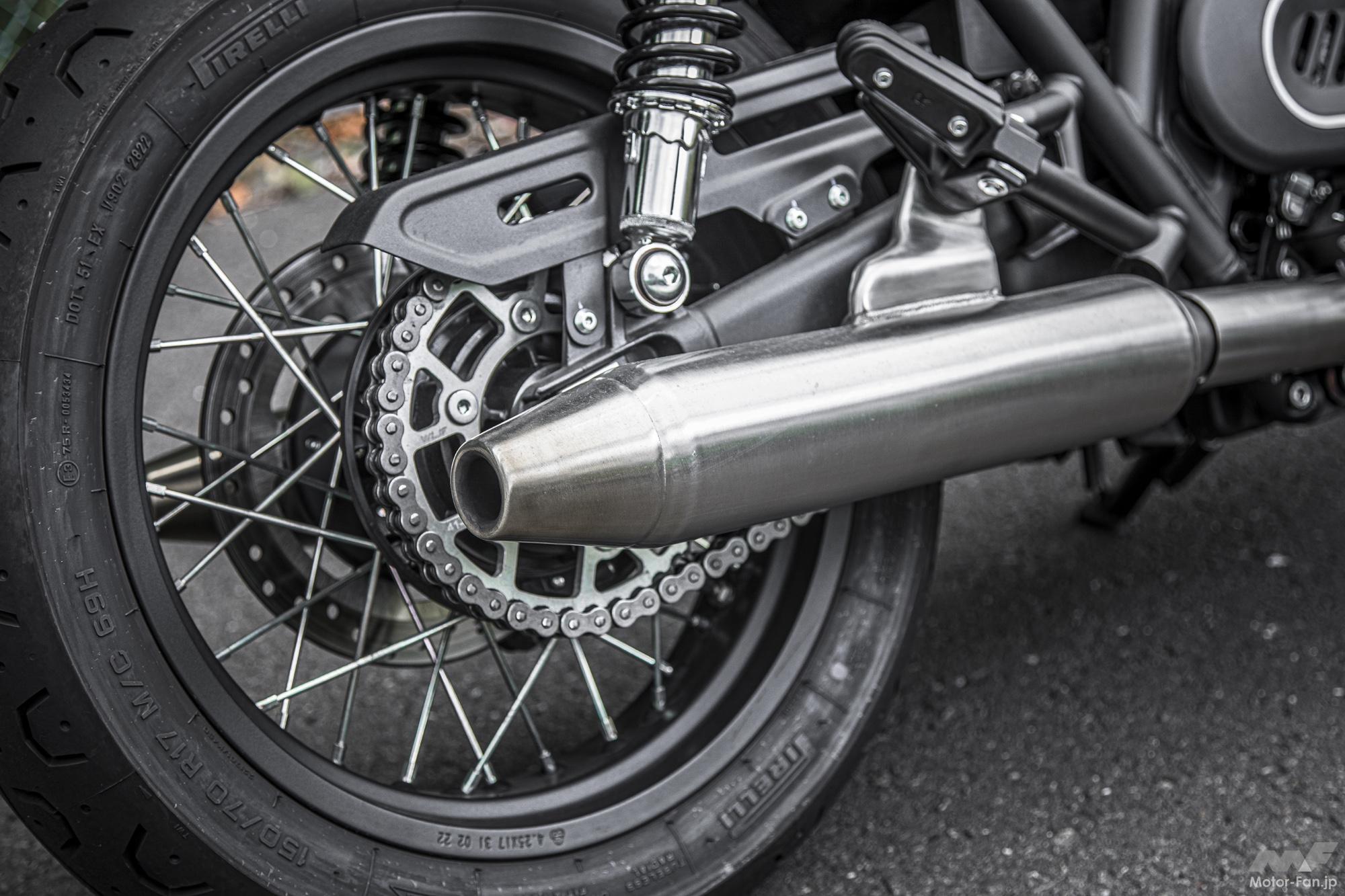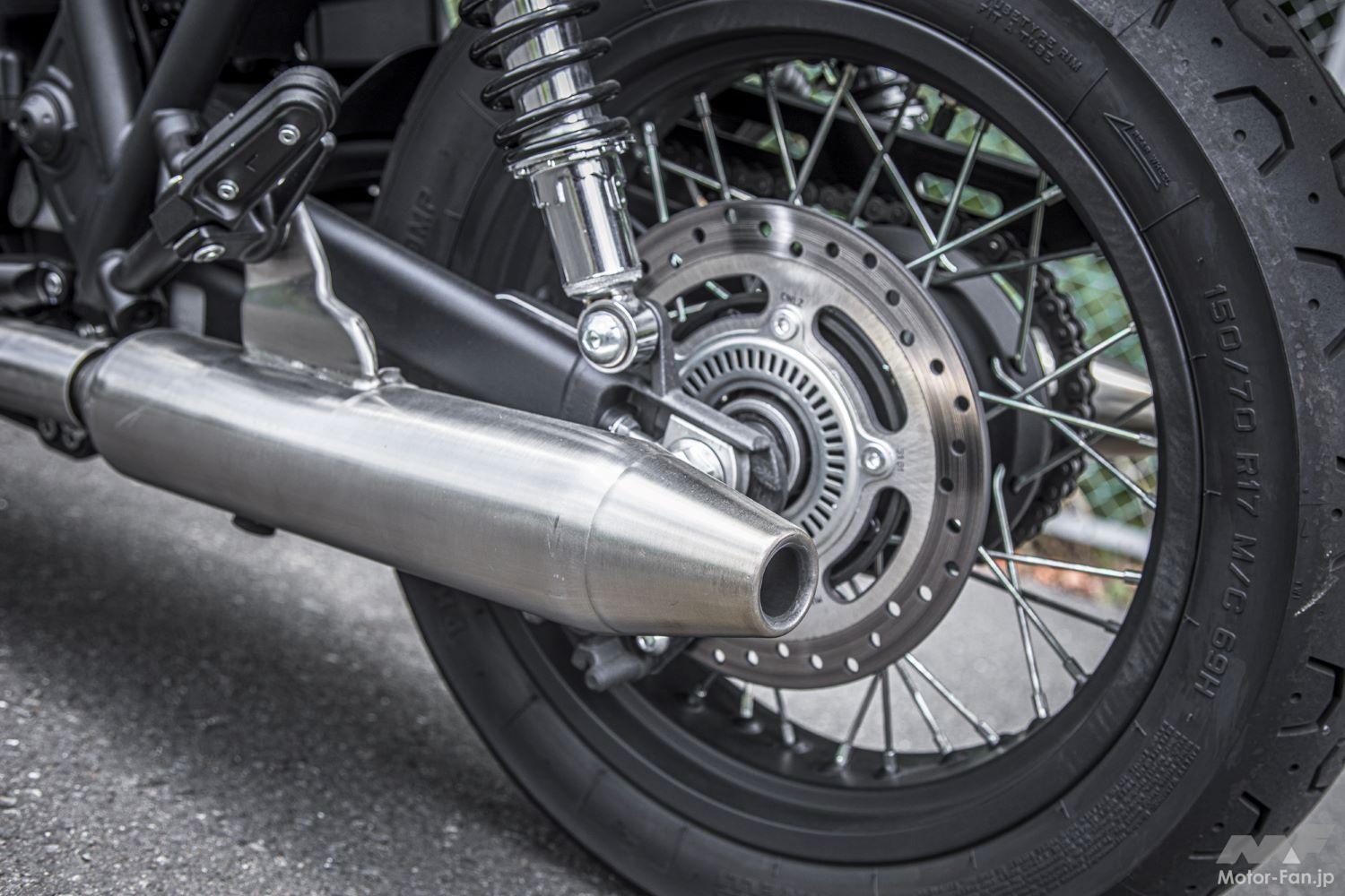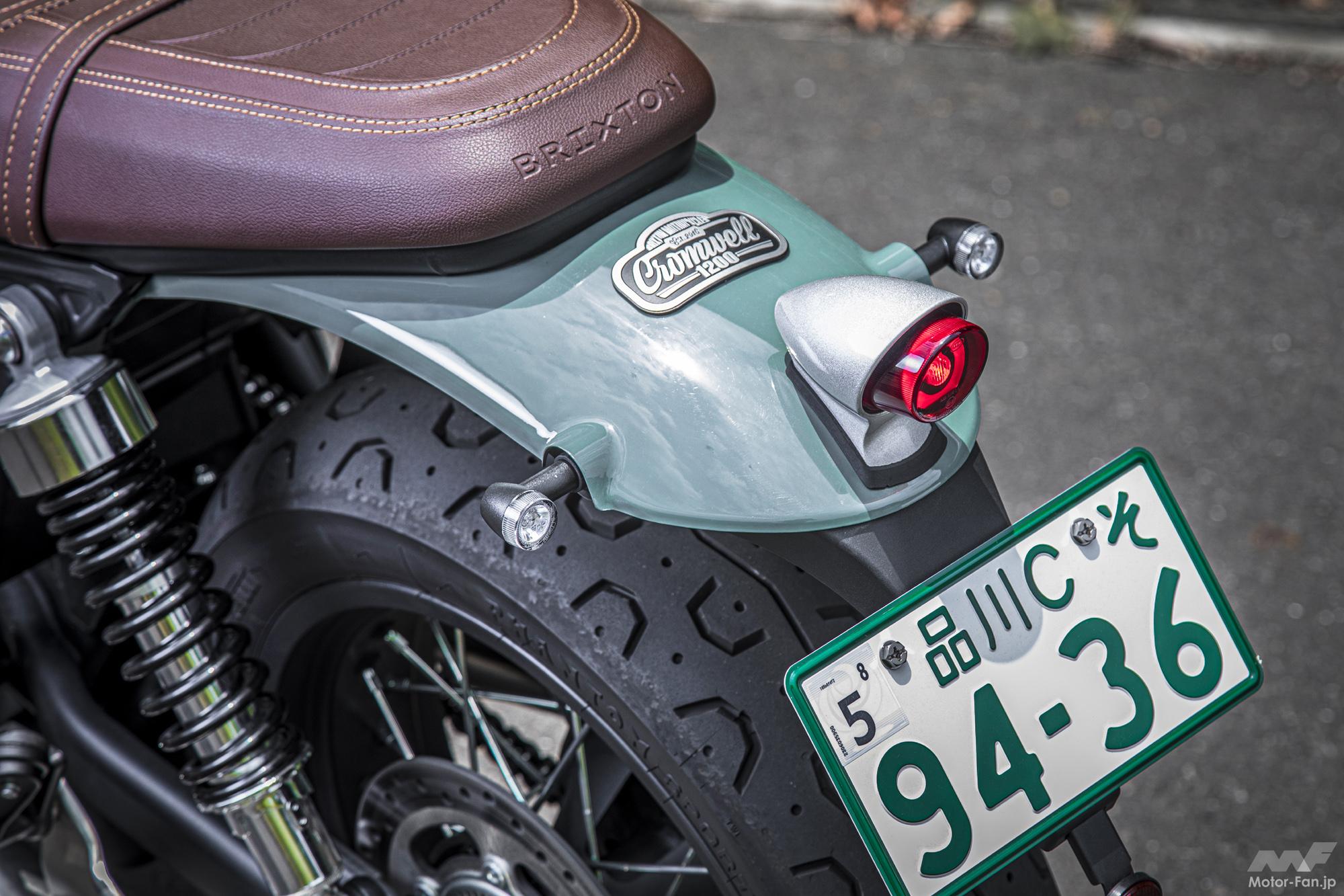 あえて違う点を拾うと、クロムウェル1200のフェンダーは短く浅いデザインを採用。ステンレス製マフラーの造形も軽快でスポーティな印象に仕上げられている。