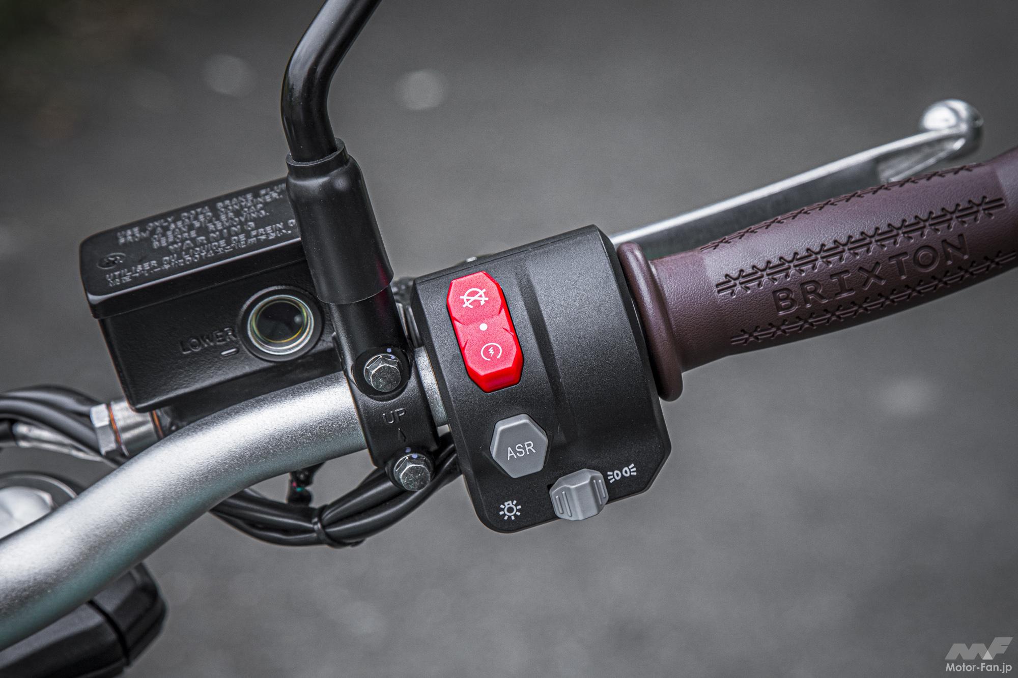 またクルーズコントロールシステムも標準装備されており、左手スイッチの長押しで起動させると30~160km/hの範囲で設定速度を維持してくれる。ちなみにモード選択もスイッチの長押しで切り替えでき、同時にメーターティスプレーもそれぞれのデザインに変更されるので分かりやすい。