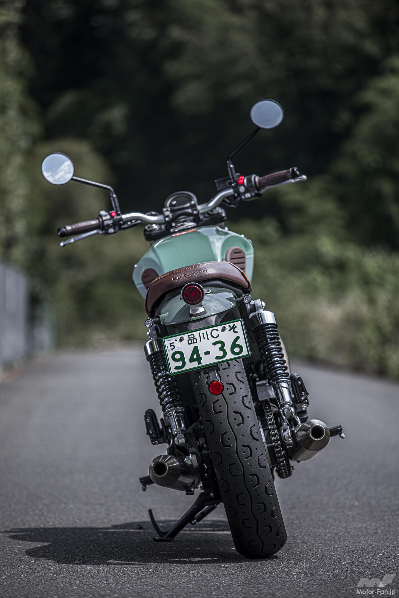 前後サスペンションはKYB製、前後ブレーキはNISSIN製を装着。ヘッドランプステーの仕上げや、ジャックナイフ式に折り畳めるイグニッションキー、ダブルステッチがあしらわれたシートなど、プレミアムな雰囲気の演出にも手が込められている。